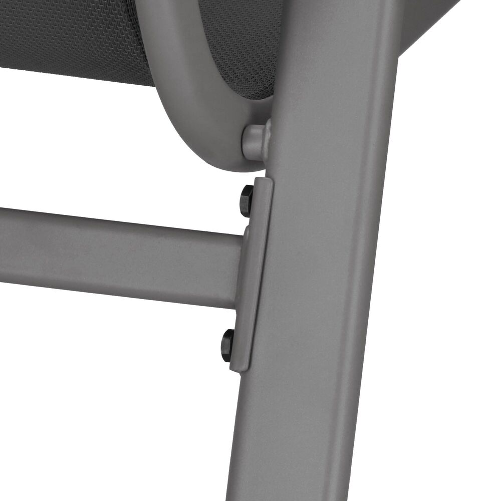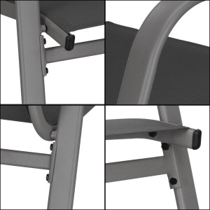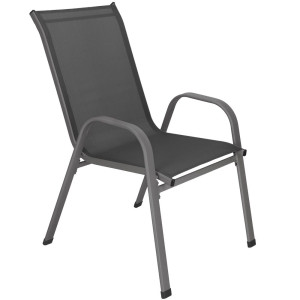 Pohodlné venkovní židle s vysokým opěradlem a širokými područkami zajistí komfort při sezení. Textilní podsedák je prodyšný a neabsorbuje vlhkost, ideální pro každé počasí. Díky stohovatelnosti snadno ušetříte místo. Kvalitní zpracování, antikorozní lakování a zaoblené hrany zaručují dlouhou životnost. Nosnost 120 kg.