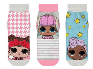 Kotníčkové ponožky s motivem Lol. Set 6 ks: velikosti 23-26, 27-30, 31-34. Materiál: 65% polyester, 33% bavlna, 2% elastan. Oficiální licence.
