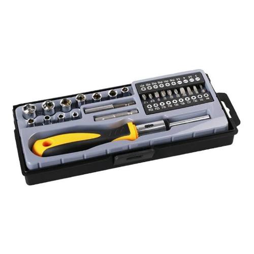 sada bitů a nástavců - 40 ksvšechny díly vyrobeny z oceli S2 (5075)sada bitů je kolekce různých nástavců (bitů), které jsou určeny k použití s ručními nebo elektrickými šroubovákytyto bity se...
