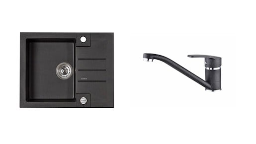 Dotaz na produkt Na splátky ještě dnesSet Dřez: granitový s odkapem, materiál granital, 80% kameniny, extra hladký povrch, snadná údržba, excentrický sítkový odtok 3 1/2" s přepadem, sifon pro úsporu místa s odbočkou na myčku, vyvrtané otvory pro baterii a excentrický sifon, univerzální dřez+baterie: rozměry 237x111 mm