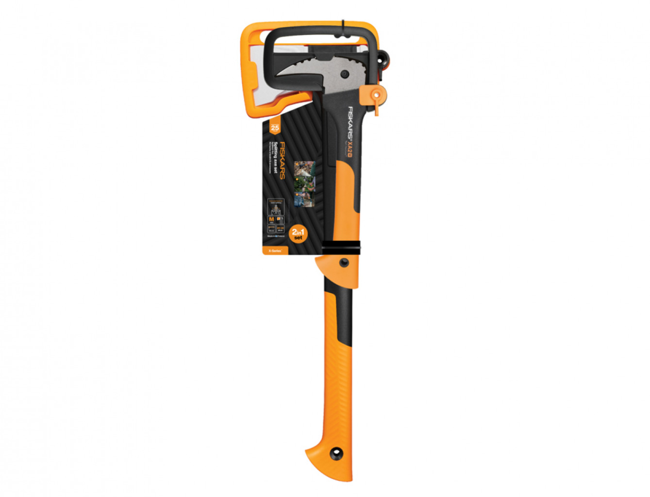 Dotaz na produkt Na splátky ještě dnesSet sekery FISKARS X24 a sapiny FISKARS XA2. Nová generace seker FISKARS vyniká designem čepele, s pokročilou geometrií zvyšující výkon a usnadňující vyjmutí čepele ze dřeva. Čepel je dvojitě kalená a řezná hrana precizně broušená. Hmotnost sekery je optimálně rozložena pro větší sílu při sekání. Rukojeť je ergonomicky zakřivená, pro lepší výkon a uživatelský komfort, má zahnutý konec pro větší bezpečnost a dostatečně velkou chopovou zónu pro lepší pohodlí a kontrolu. S bezpečnějším, nerozebíratelným spojením hlavy a topůrka. Topůrko je odolné konstrukce Fiber comp. Velikost čepele: M. Délka topůrka: 60 cm. Hmotnost hlavy: 1217 g. Celková délka hlavy: 166 mm. Záruka 25 let. Sapina je vhodná pro zvedání, přenášení a manipulaci s menší kulatinou s jejím případným snadným otáčením. FiberCompTM je pevný, trvanlivý, lehký materiál, vyztužený skelnými vlákny. Má pohodlně uchopitelnou rukojeť, která tlumí nárazy. Výrobek je ideálně vyvážen. Čepel a držadlo jsou pevně spojeny. Rozměry: š. 132 x dl. 348 mm, váha 310 g. Číslo FISKARS: 1075460.