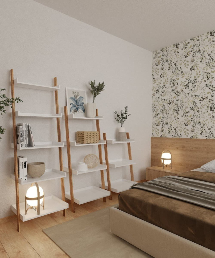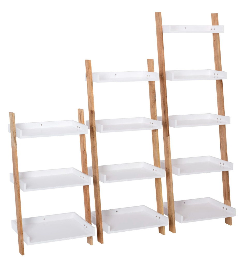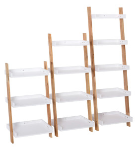 5 polic v bílém matném provedení s dýhovaným povrchem. Nosnost jedné police jsou 3 kg. Stojící provedení, v rozloženém stavu.2 kusy nosníků z dřevo masivu. Stojící provedení, v rozloženém stavu. Provedení matný dřevodekor. Hmotnost balení: 1,65 kg. Celkové rozměry složeného setu jsou: 53,5x40x170 cm.