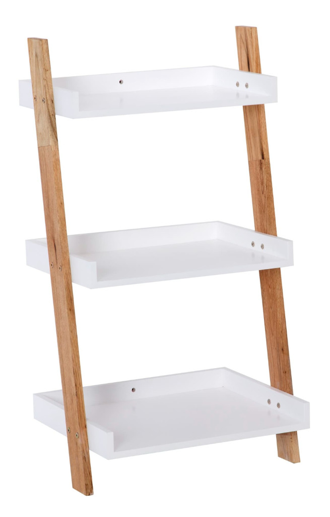3 police v bílém matném provedení s dýhovaným povrchem. Nosnost jedné police jsou 3 kg. Stojící provedení, v rozloženém stavu. 2 kusy nosníků z dřevo masivu. Stojící provedení, v rozloženém stavu. Provedení matný dřevodekor. Hmotnost balení: 1,65 kg. Celkové rozměry složeného setu jsou: 53,5x40x98 cm.