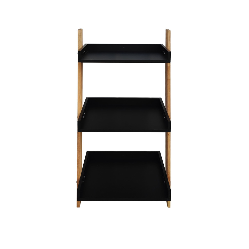 3 police v černém provedení s dýhovaným povrchem. Nosnost jedné police jsou 3 kg. 2 kusy nosníků z dřevo masivu. Stojící provedení, v rozloženém stavu. Provedení matný dřevodekor. Hmotnost balení: 1,65 kg. Celkové rozměry složeného setu jsou: 53,5x40x98 cm.