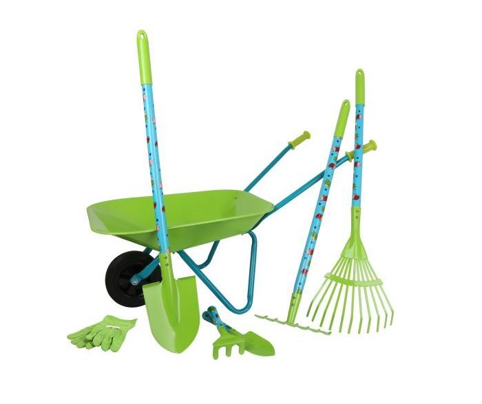 Dotaz na produkt Na splátky ještě dnesHurá na zahradu! Mladí zahradkáři vám rádi pomohou s touto velkou sadou zahradního nářadí. Stačí si nasadit rukavice a mohou začít motykou, hráběmi, rýčem, kolečkem a dalšími nástroji pomáhat a rozvíjet své zahradnické zkušenosti. Všechny díly jsou vyrobeny z vysoce kvalitního, jemně opracovaného kovu a díky svému dětskému designu a jarním barvám potěší každého malého zahrádkáře nebo zahradnici. Kolečko má plastové kolo s pevnou bezvzduchovou gumovou pneumatikou.