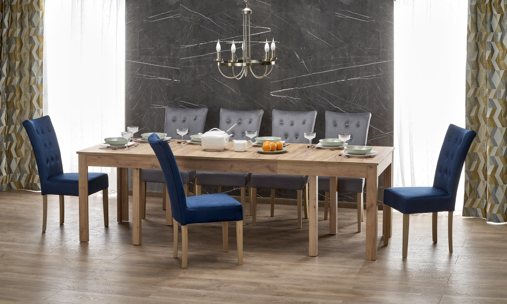 Dotaz na produkt Na splátky ještě dnesrozkládací stůl, rozměry: 160÷300/90/76 cm, materiál: deska - lamino, ABS hrany, nohy - lamino MDF, barva: řemeslný dub