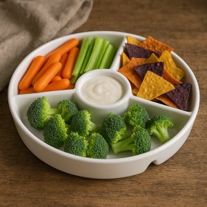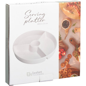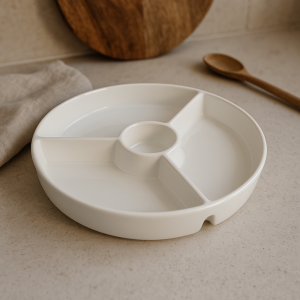 Jednoduchý a elegantní snack talíř z bílého porcelánu je ideální pro servírování předkrmů, tapas nebo drobného občerstvení. Díky svému čistému designu a kvalitnímu provedení se hodí do každé domácnosti i pro slavnostní příležitosti.