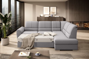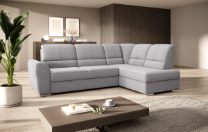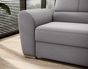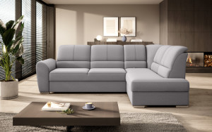Dotaz na produkt Na splátky ještě dnesRohová pohovka Siber je perfektním řešením pro lidi, kteří si cení pořádku a organizace. Díky velkému prostoru na ložní prádlo pomáhá šetřit místo. Její vysoce profilovaná nastavitelná opěradla zdobená stylovým prošíváním promění i hodiny relaxace s vaším oblíbeným televizním seriálem v pohodlný a příjemný zážitek. Rozměry rohové pohovky: 270 x 186 x 93 cm, což umožňuje klidný odpočinek pro větší počet osob bez nutnosti přidávat další sedací soupravu. Rohová pohovka se navíc může stát dalším lůžkem díky funkci skládacího spaní s plochou 205 x 125 cm. Skládací mechanismus delfín použitý v tomto kusu nábytku je skvělý a jednoduchý způsob, jak proměnit rohovou pohovku v plnohodnotnou postel. Za zmínku stojí také nastavitelná opěradla, která vám pomohou pohodlně relaxovat při čtení knihy nebo sledování televize. Zajímavými prvky tohoto kusu nábytku jsou jeho 5 cm vysoké dřevěné nohy a sedák vyplněný pěnou T30, která poskytuje vynikající elasticitu a vysokou hustotu. Látky: Gojo 4