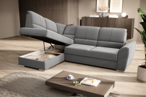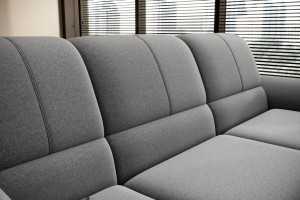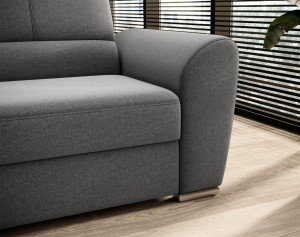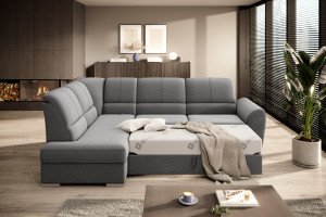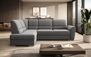 Dotaz na produkt Na splátky ještě dnesRohová pohovka Siber je perfektním řešením pro lidi, kteří si cení pořádku a organizace. Díky velkému prostoru na ložní prádlo pomáhá šetřit místo. Její vysoce profilovaná nastavitelná opěradla zdobená stylovým prošíváním promění i hodiny relaxace s vaším oblíbeným televizním seriálem v pohodlný a příjemný zážitek. Rozměry rohové pohovky: 270 x 186 x 93 cm, což umožňuje klidný odpočinek pro větší počet osob bez nutnosti přidávat další sedací soupravu. Rohová pohovka se navíc může stát dalším lůžkem díky funkci skládacího spaní s plochou 205 x 125 cm. Skládací mechanismus delfín použitý v tomto kusu nábytku je skvělý a jednoduchý způsob, jak proměnit rohovou pohovku v plnohodnotnou postel. Za zmínku stojí také nastavitelná opěradla, která vám pomohou pohodlně relaxovat při čtení knihy nebo sledování televize. Zajímavými prvky tohoto kusu nábytku jsou jeho 5 cm vysoké dřevěné nohy a sedák vyplněný pěnou T30, která poskytuje vynikající elasticitu a vysokou hustotu. Látky: Gojo 5