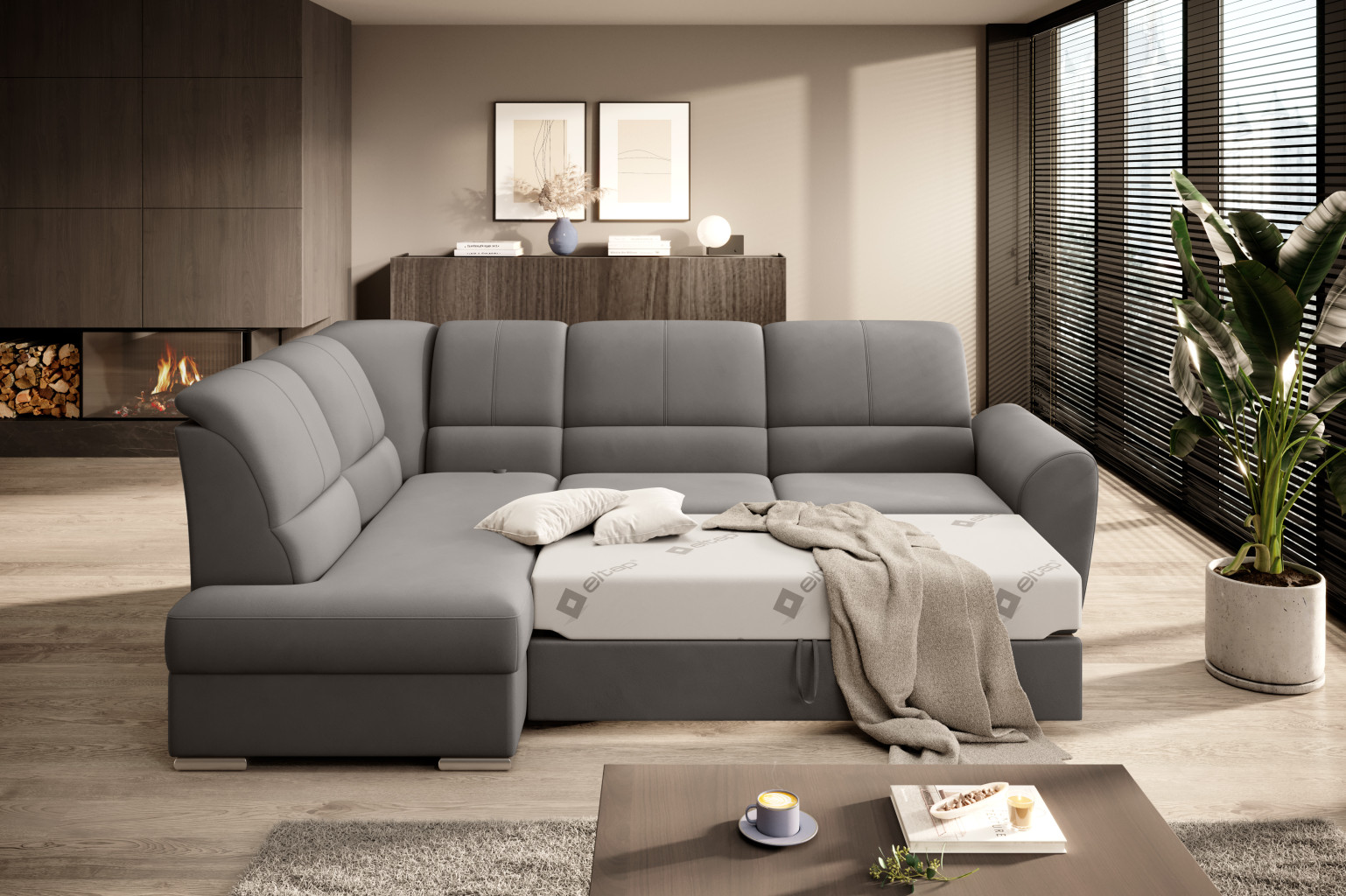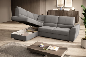 Dotaz na produkt Na splátky ještě dnesRohová pohovka Siber je perfektním řešením pro lidi, kteří si cení pořádku a organizace. Díky velkému prostoru na ložní prádlo pomáhá šetřit místo. Její vysoce profilovaná nastavitelná opěradla zdobená stylovým prošíváním promění i hodiny relaxace s vaším oblíbeným televizním seriálem v pohodlný a příjemný zážitek. Rozměry rohové pohovky: 270 x 186 x 93 cm, což umožňuje klidný odpočinek pro větší počet osob bez nutnosti přidávat další sedací soupravu. Rohová pohovka se navíc může stát dalším lůžkem díky funkci skládacího spaní s plochou 205 x 125 cm. Skládací mechanismus delfín použitý v tomto kusu nábytku je skvělý a jednoduchý způsob, jak proměnit rohovou pohovku v plnohodnotnou postel. Za zmínku stojí také nastavitelná opěradla, která vám pomohou pohodlně relaxovat při čtení knihy nebo sledování televize. Zajímavými prvky tohoto kusu nábytku jsou jeho 5 cm vysoké dřevěné nohy a sedák vyplněný pěnou T30, která poskytuje vynikající elasticitu a vysokou hustotu. Látky: Loco 4