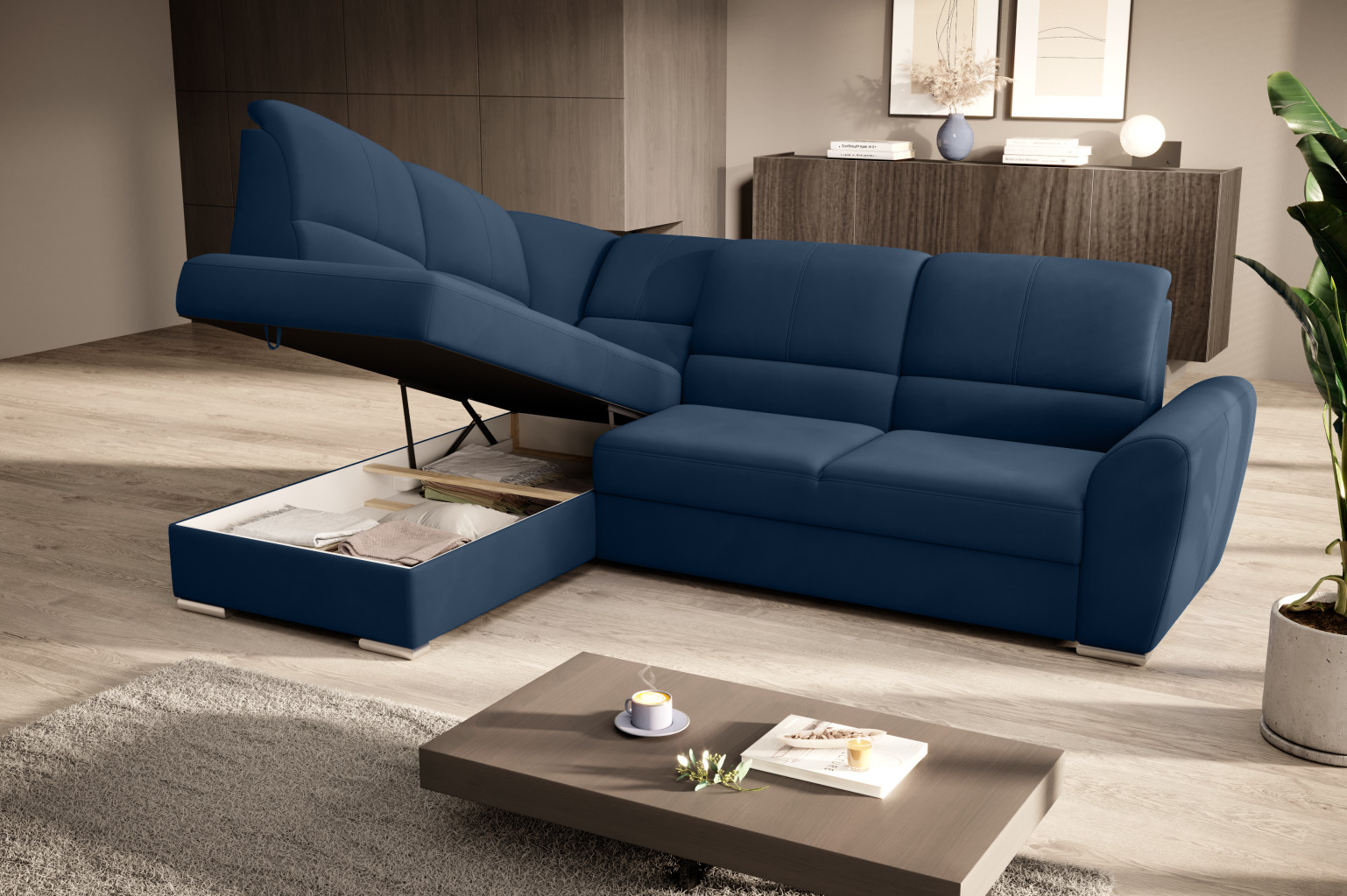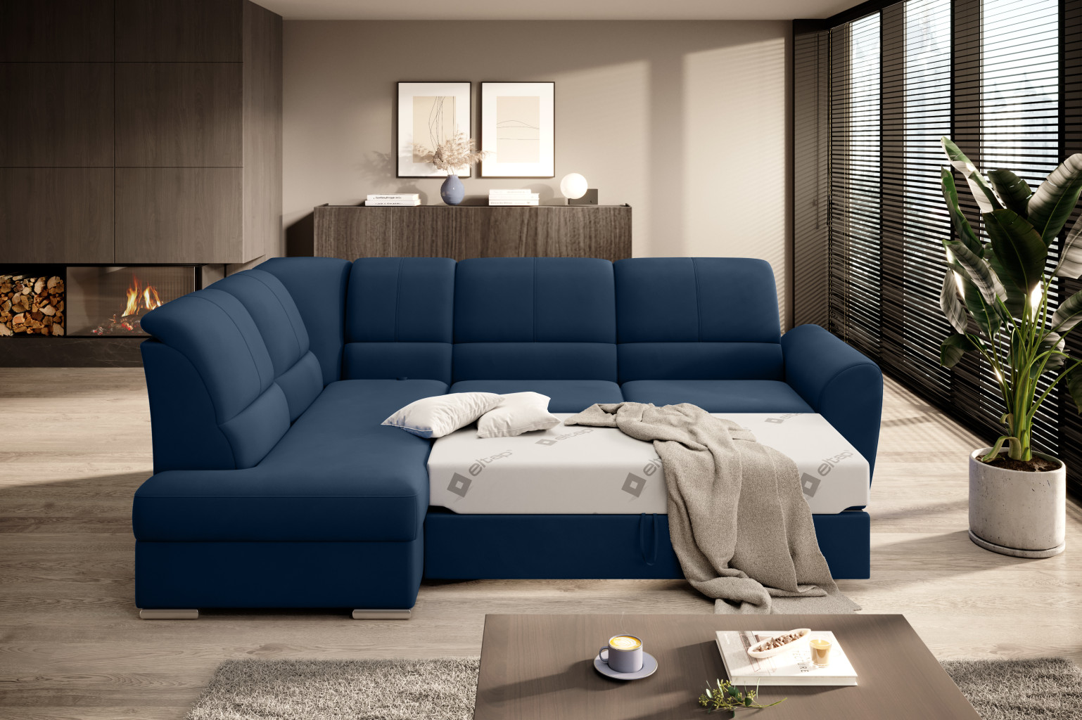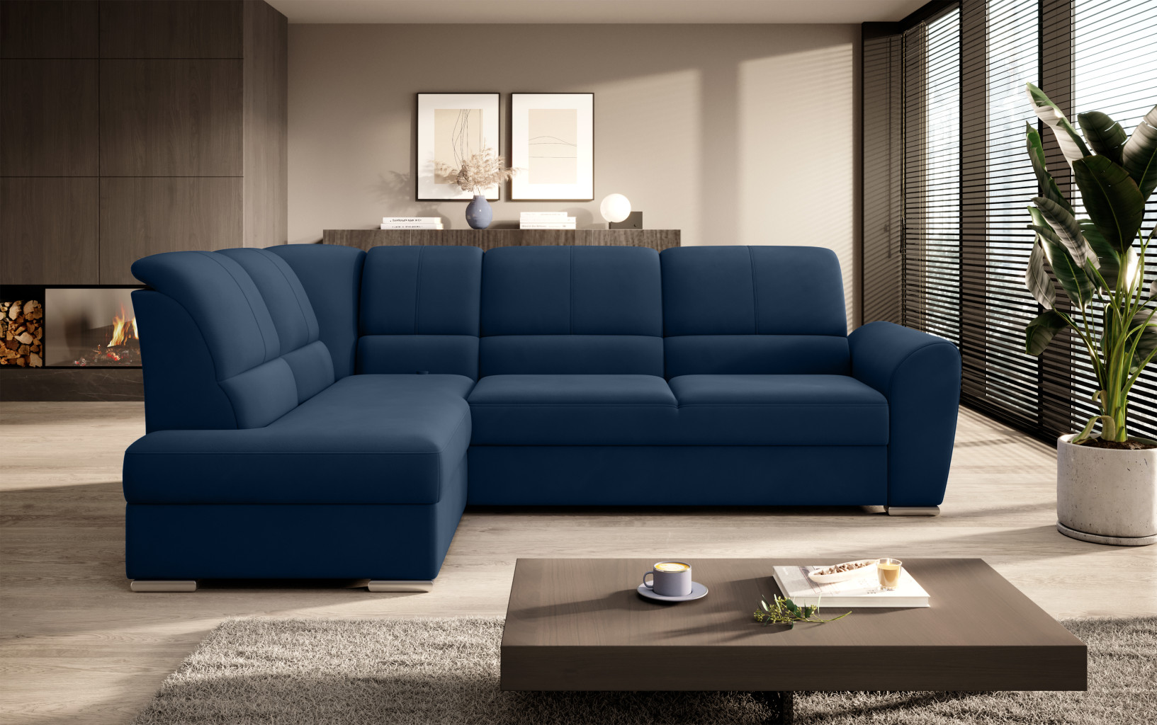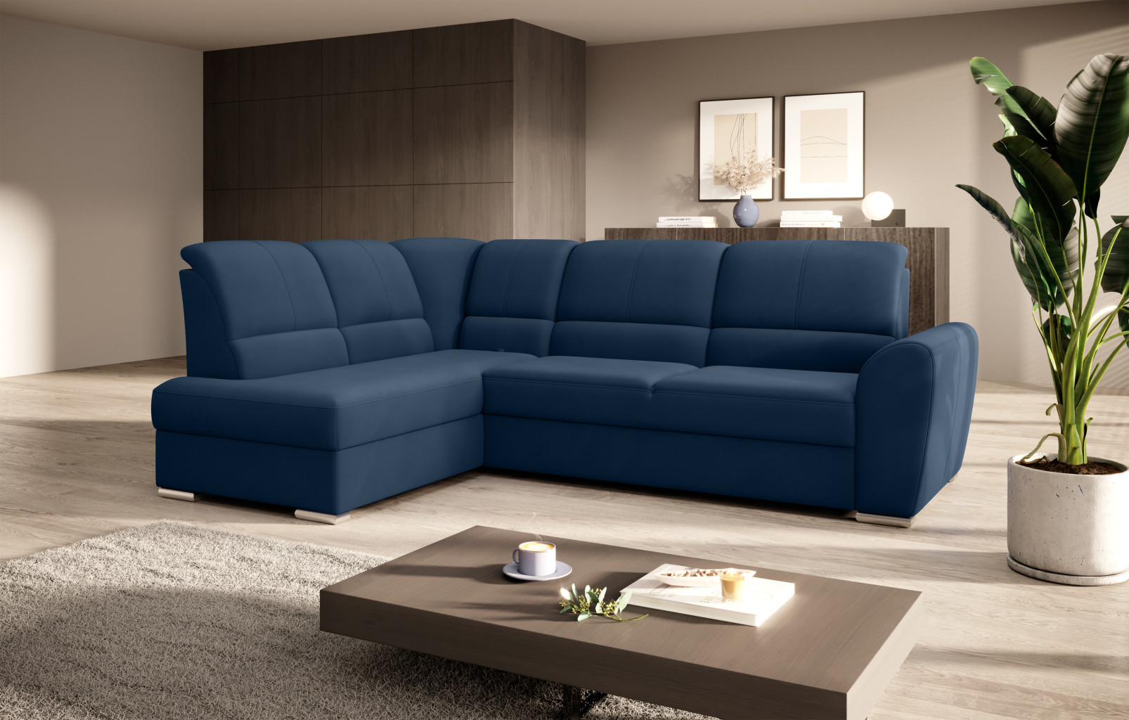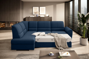 Dotaz na produkt Na splátky ještě dnesRohová pohovka Siber je perfektním řešením pro lidi, kteří si cení pořádku a organizace. Díky velkému prostoru na ložní prádlo pomáhá šetřit místo. Její vysoce profilovaná nastavitelná opěradla zdobená stylovým prošíváním promění i hodiny relaxace s vaším oblíbeným televizním seriálem v pohodlný a příjemný zážitek. Rozměry rohové pohovky: 270 x 186 x 93 cm, což umožňuje klidný odpočinek pro větší počet osob bez nutnosti přidávat další sedací soupravu. Rohová pohovka se navíc může stát dalším lůžkem díky funkci skládacího spaní s plochou 205 x 125 cm. Skládací mechanismus delfín použitý v tomto kusu nábytku je skvělý a jednoduchý způsob, jak proměnit rohovou pohovku v plnohodnotnou postel. Za zmínku stojí také nastavitelná opěradla, která vám pomohou pohodlně relaxovat při čtení knihy nebo sledování televize. Zajímavými prvky tohoto kusu nábytku jsou jeho 5 cm vysoké dřevěné nohy a sedák vyplněný pěnou T30, která poskytuje vynikající elasticitu a vysokou hustotu. Látky: Loco 40