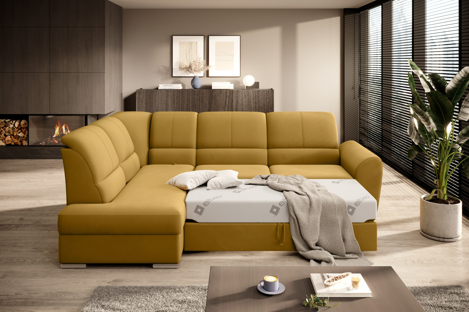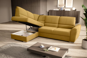 Dotaz na produkt Na splátky ještě dnesRohová pohovka Siber je perfektním řešením pro lidi, kteří si cení pořádku a organizace. Díky velkému prostoru na ložní prádlo pomáhá šetřit místo. Její vysoce profilovaná nastavitelná opěradla zdobená stylovým prošíváním promění i hodiny relaxace s vaším oblíbeným televizním seriálem v pohodlný a příjemný zážitek. Rozměry rohové pohovky: 270 x 186 x 93 cm, což umožňuje klidný odpočinek pro větší počet osob bez nutnosti přidávat další sedací soupravu. Rohová pohovka se navíc může stát dalším lůžkem díky funkci skládacího spaní s plochou 205 x 125 cm. Skládací mechanismus delfín použitý v tomto kusu nábytku je skvělý a jednoduchý způsob, jak proměnit rohovou pohovku v plnohodnotnou postel. Za zmínku stojí také nastavitelná opěradla, která vám pomohou pohodlně relaxovat při čtení knihy nebo sledování televize. Zajímavými prvky tohoto kusu nábytku jsou jeho 5 cm vysoké dřevěné nohy a sedák vyplněný pěnou T30, která poskytuje vynikající elasticitu a vysokou hustotu. Látky: Loco 45