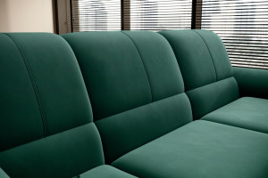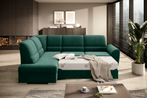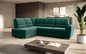 Dotaz na produkt Na splátky ještě dnesRohová pohovka Siber je perfektním řešením pro lidi, kteří si cení pořádku a organizace. Díky velkému prostoru na ložní prádlo pomáhá šetřit místo. Její vysoce profilovaná nastavitelná opěradla zdobená stylovým prošíváním promění i hodiny relaxace s vaším oblíbeným televizním seriálem v pohodlný a příjemný zážitek. Rozměry rohové pohovky: 270 x 186 x 93 cm, což umožňuje klidný odpočinek pro větší počet osob bez nutnosti přidávat další sedací soupravu. Rohová pohovka se navíc může stát dalším lůžkem díky funkci skládacího spaní s plochou 205 x 125 cm. Skládací mechanismus delfín použitý v tomto kusu nábytku je skvělý a jednoduchý způsob, jak proměnit rohovou pohovku v plnohodnotnou postel. Za zmínku stojí také nastavitelná opěradla, která vám pomohou pohodlně relaxovat při čtení knihy nebo sledování televize. Zajímavými prvky tohoto kusu nábytku jsou jeho 5 cm vysoké dřevěné nohy a sedák vyplněný pěnou T30, která poskytuje vynikající elasticitu a vysokou hustotu. Látky: Lukso 35