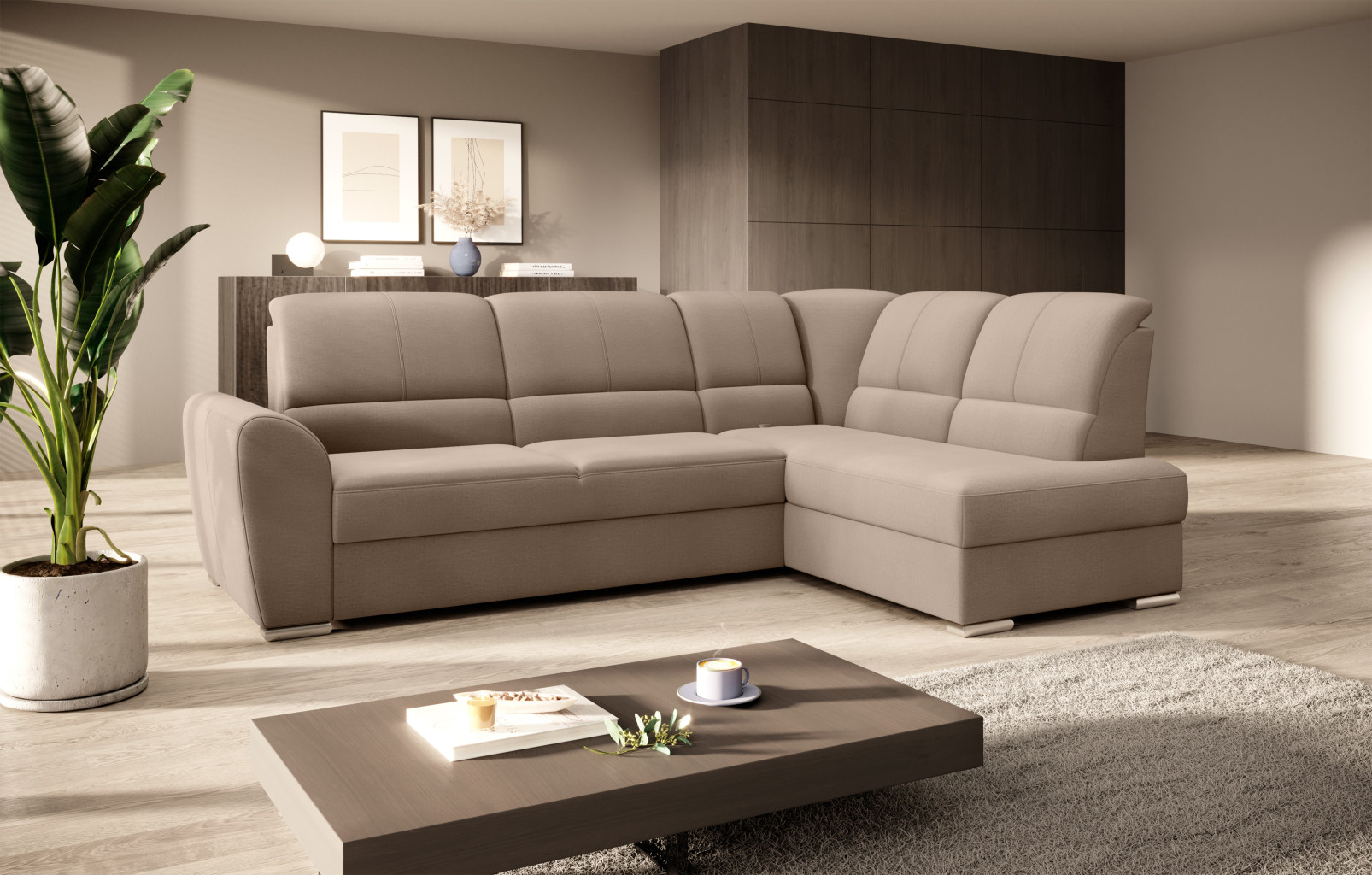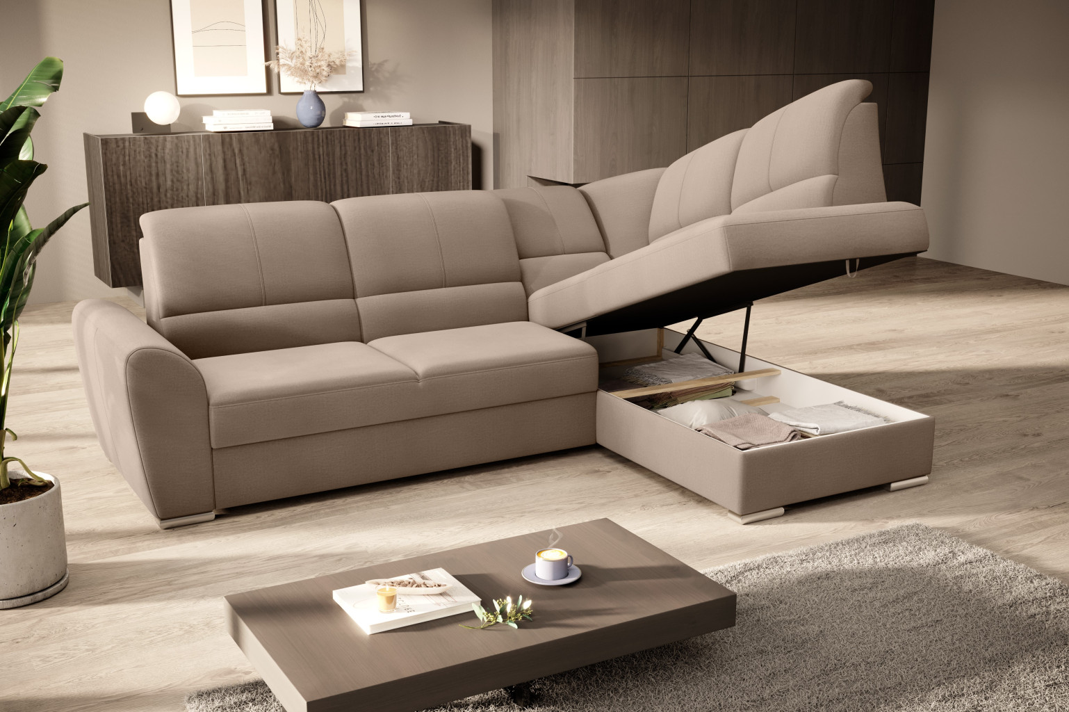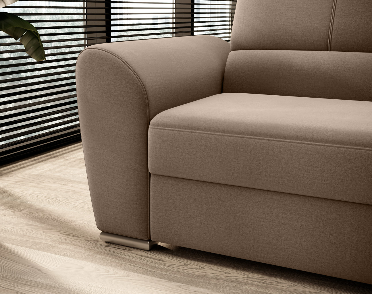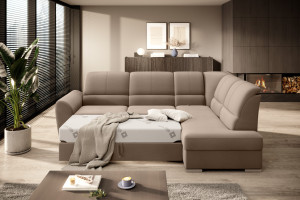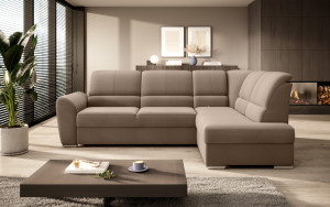 Dotaz na produkt Na splátky ještě dnesRohová pohovka Siber je perfektním řešením pro lidi, kteří si cení pořádku a organizace. Díky velkému prostoru na ložní prádlo pomáhá šetřit místo. Její vysoce profilovaná nastavitelná opěradla zdobená stylovým prošíváním promění i hodiny relaxace s vaším oblíbeným televizním seriálem v pohodlný a příjemný zážitek. Rozměry rohové pohovky: 270 x 186 x 93 cm, což umožňuje klidný odpočinek pro větší počet osob bez nutnosti přidávat další sedací soupravu. Rohová pohovka se navíc může stát dalším lůžkem díky funkci skládacího spaní s plochou 205 x 125 cm. Skládací mechanismus delfín použitý v tomto kusu nábytku je skvělý a jednoduchý způsob, jak proměnit rohovou pohovku v plnohodnotnou postel. Za zmínku stojí také nastavitelná opěradla, která vám pomohou pohodlně relaxovat při čtení knihy nebo sledování televize. Zajímavými prvky tohoto kusu nábytku jsou jeho 5 cm vysoké dřevěné nohy a sedák vyplněný pěnou T30, která poskytuje vynikající elasticitu a vysokou hustotu. Látka: Nube 20