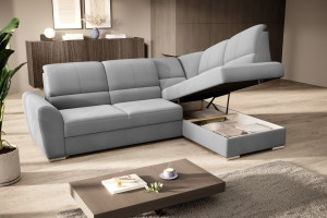 Dotaz na produkt Na splátky ještě dnesRohová pohovka Siber je perfektním řešením pro lidi, kteří si cení pořádku a organizace. Díky velkému prostoru na ložní prádlo pomáhá šetřit místo. Její vysoce profilovaná nastavitelná opěradla zdobená stylovým prošíváním promění i hodiny relaxace s vaším oblíbeným televizním seriálem v pohodlný a příjemný zážitek. Rozměry rohové pohovky: 270 x 186 x 93 cm, což umožňuje klidný odpočinek pro větší počet osob bez nutnosti přidávat další sedací soupravu. Rohová pohovka se navíc může stát dalším lůžkem díky funkci skládacího spaní s plochou 205 x 125 cm. Skládací mechanismus delfín použitý v tomto kusu nábytku je skvělý a jednoduchý způsob, jak proměnit rohovou pohovku v plnohodnotnou postel. Za zmínku stojí také nastavitelná opěradla, která vám pomohou pohodlně relaxovat při čtení knihy nebo sledování televize. Zajímavými prvky tohoto kusu nábytku jsou jeho 5 cm vysoké dřevěné nohy a sedák vyplněný pěnou T30, která poskytuje vynikající elasticitu a vysokou hustotu. Látky: Nube 3