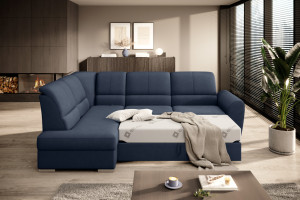 Dotaz na produkt Na splátky ještě dnesRohová pohovka Siber je perfektním řešením pro lidi, kteří si cení pořádku a organizace. Díky velkému prostoru na ložní prádlo pomáhá šetřit místo. Její vysoce profilovaná nastavitelná opěradla zdobená stylovým prošíváním promění i hodiny relaxace s vaším oblíbeným televizním seriálem v pohodlný a příjemný zážitek. Rozměry rohové pohovky: 270 x 186 x 93 cm, což umožňuje klidný odpočinek pro větší počet osob bez nutnosti přidávat další sedací soupravu. Rohová pohovka se navíc může stát dalším lůžkem díky funkci skládacího spaní s plochou 205 x 125 cm. Skládací mechanismus delfín použitý v tomto kusu nábytku je skvělý a jednoduchý způsob, jak proměnit rohovou pohovku v plnohodnotnou postel. Za zmínku stojí také nastavitelná opěradla, která vám pomohou pohodlně relaxovat při čtení knihy nebo sledování televize. Zajímavými prvky tohoto kusu nábytku jsou jeho 5 cm vysoké dřevěné nohy a sedák vyplněný pěnou T30, která poskytuje vynikající elasticitu a vysokou hustotu. Látky: Poco 40