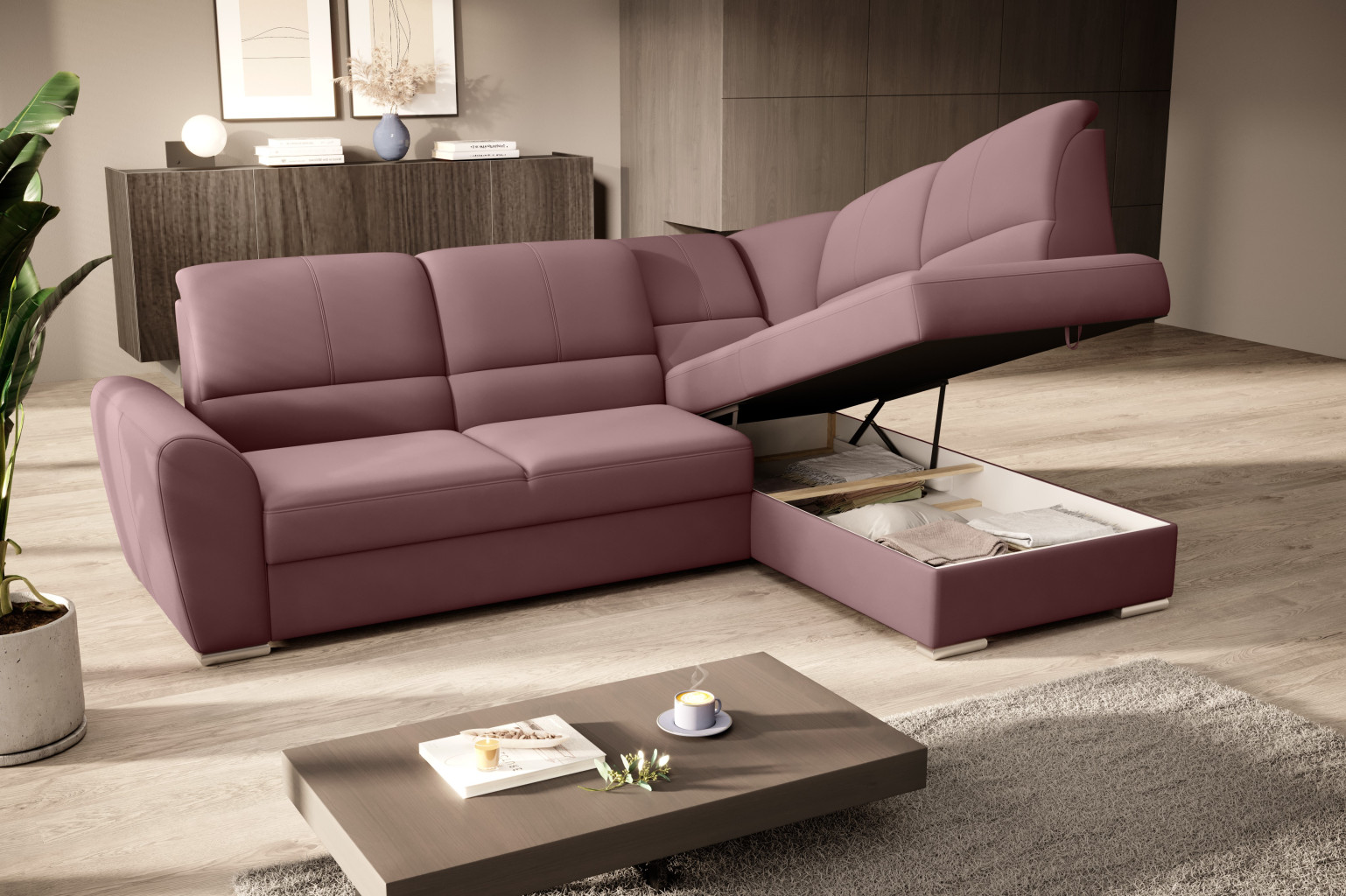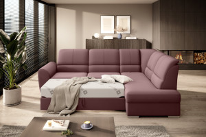 Dotaz na produkt Na splátky ještě dnesRohová pohovka Siber je perfektním řešením pro lidi, kteří si cení pořádku a organizace. Díky velkému prostoru na ložní prádlo pomáhá šetřit místo. Její vysoce profilovaná nastavitelná opěradla zdobená stylovým prošíváním promění i hodiny relaxace s vaším oblíbeným televizním seriálem v pohodlný a příjemný zážitek. Rozměry rohové pohovky: 270 x 186 x 93 cm, což umožňuje klidný odpočinek pro větší počet osob bez nutnosti přidávat další sedací soupravu. Rohová pohovka se navíc může stát dalším lůžkem díky funkci skládacího spaní s plochou 205 x 125 cm. Skládací mechanismus delfín použitý v tomto kusu nábytku je skvělý a jednoduchý způsob, jak proměnit rohovou pohovku v plnohodnotnou postel. Za zmínku stojí také nastavitelná opěradla, která vám pomohou pohodlně relaxovat při čtení knihy nebo sledování televize. Zajímavými prvky tohoto kusu nábytku jsou jeho 5 cm vysoké dřevěné nohy a sedák vyplněný pěnou T30, která poskytuje vynikající elasticitu a vysokou hustotu. Látky: Velvetmat 24