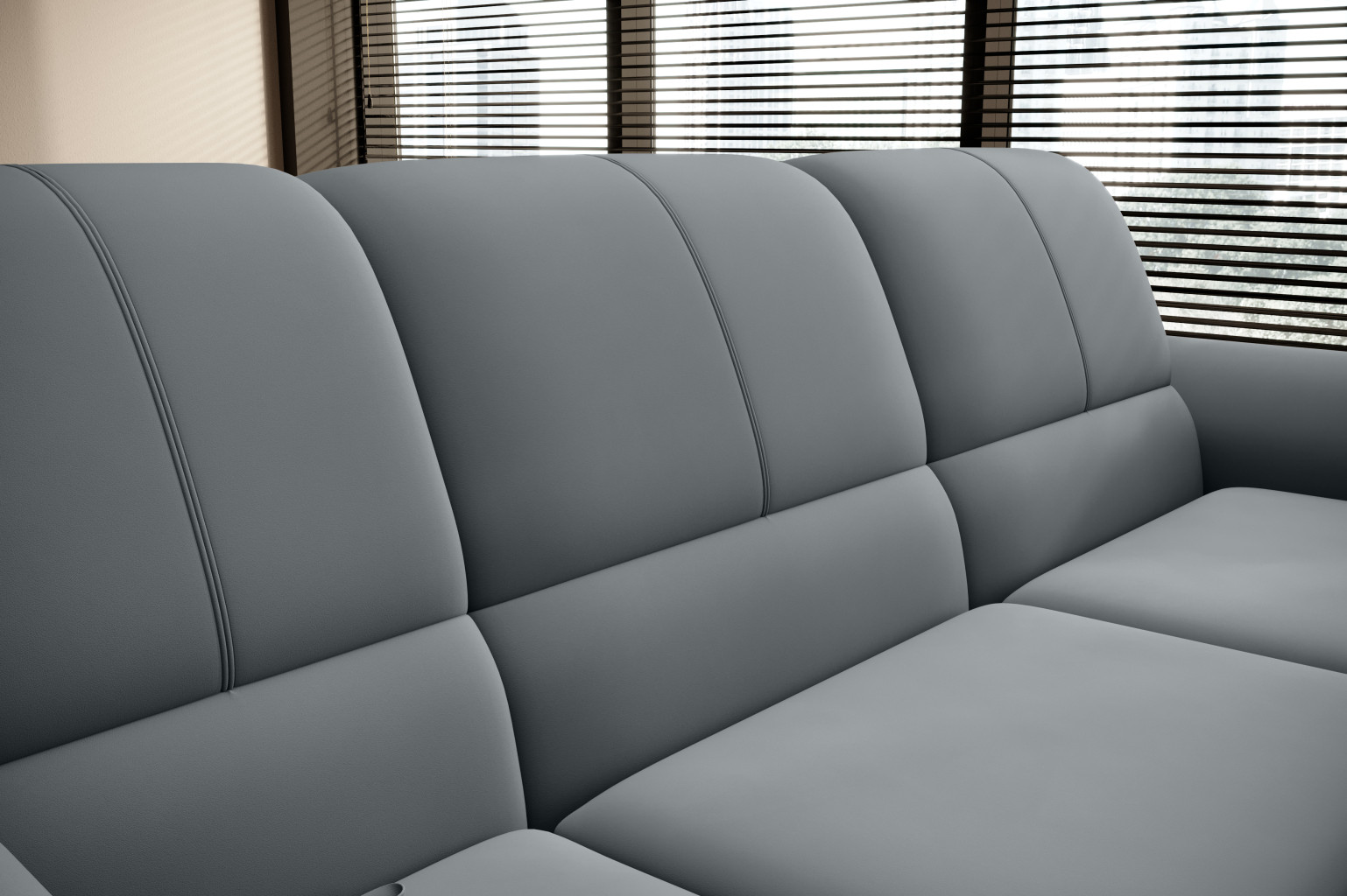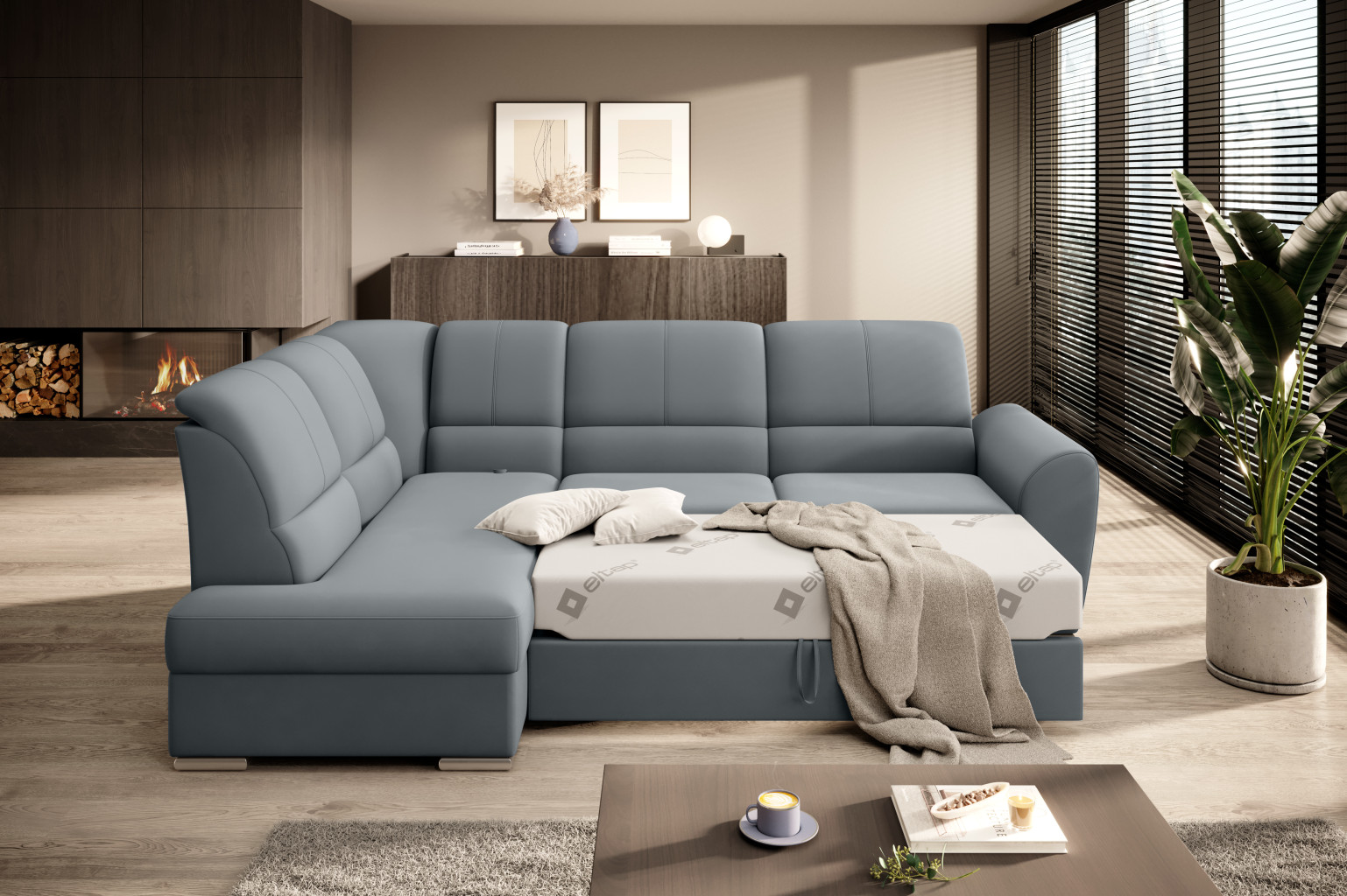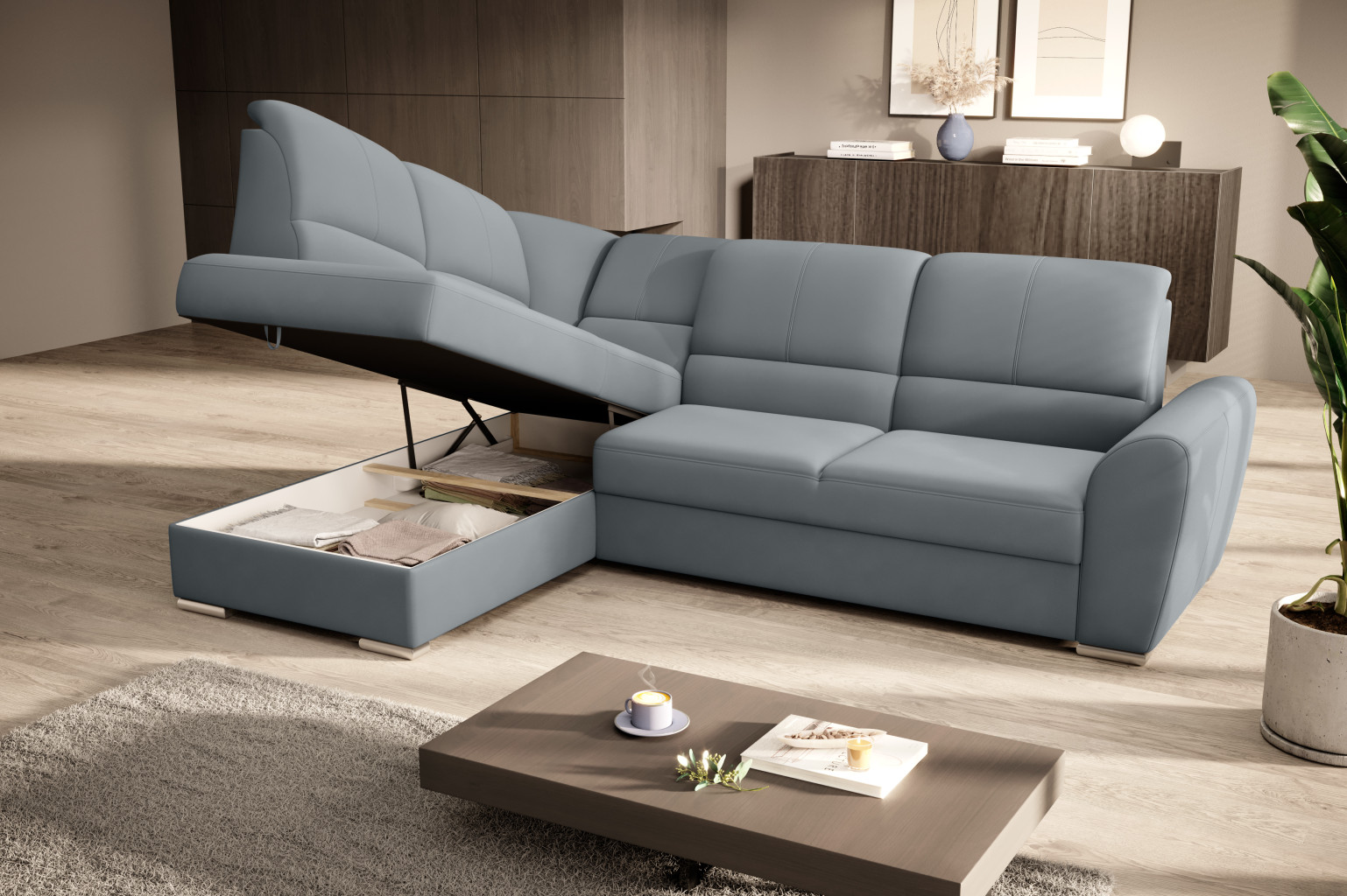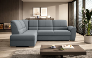 Dotaz na produkt Na splátky ještě dnesRohová pohovka Siber je perfektním řešením pro lidi, kteří si cení pořádku a organizace. Díky velkému prostoru na ložní prádlo pomáhá šetřit místo. Její vysoce profilovaná nastavitelná opěradla zdobená stylovým prošíváním promění i hodiny relaxace s vaším oblíbeným televizním seriálem v pohodlný a příjemný zážitek. Rozměry rohové pohovky: 270 x 186 x 93 cm, což umožňuje klidný odpočinek pro větší počet osob bez nutnosti přidávat další sedací soupravu. Rohová pohovka se navíc může stát dalším lůžkem díky funkci skládacího spaní s plochou 205 x 125 cm. Skládací mechanismus delfín použitý v tomto kusu nábytku je skvělý a jednoduchý způsob, jak proměnit rohovou pohovku v plnohodnotnou postel. Za zmínku stojí také nastavitelná opěradla, která vám pomohou pohodlně relaxovat při čtení knihy nebo sledování televize. Zajímavými prvky tohoto kusu nábytku jsou jeho 5 cm vysoké dřevěné nohy a sedák vyplněný pěnou T30, která poskytuje vynikající elasticitu a vysokou hustotu. Látky: Velvetmat 4