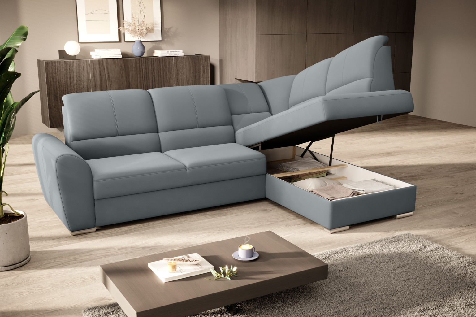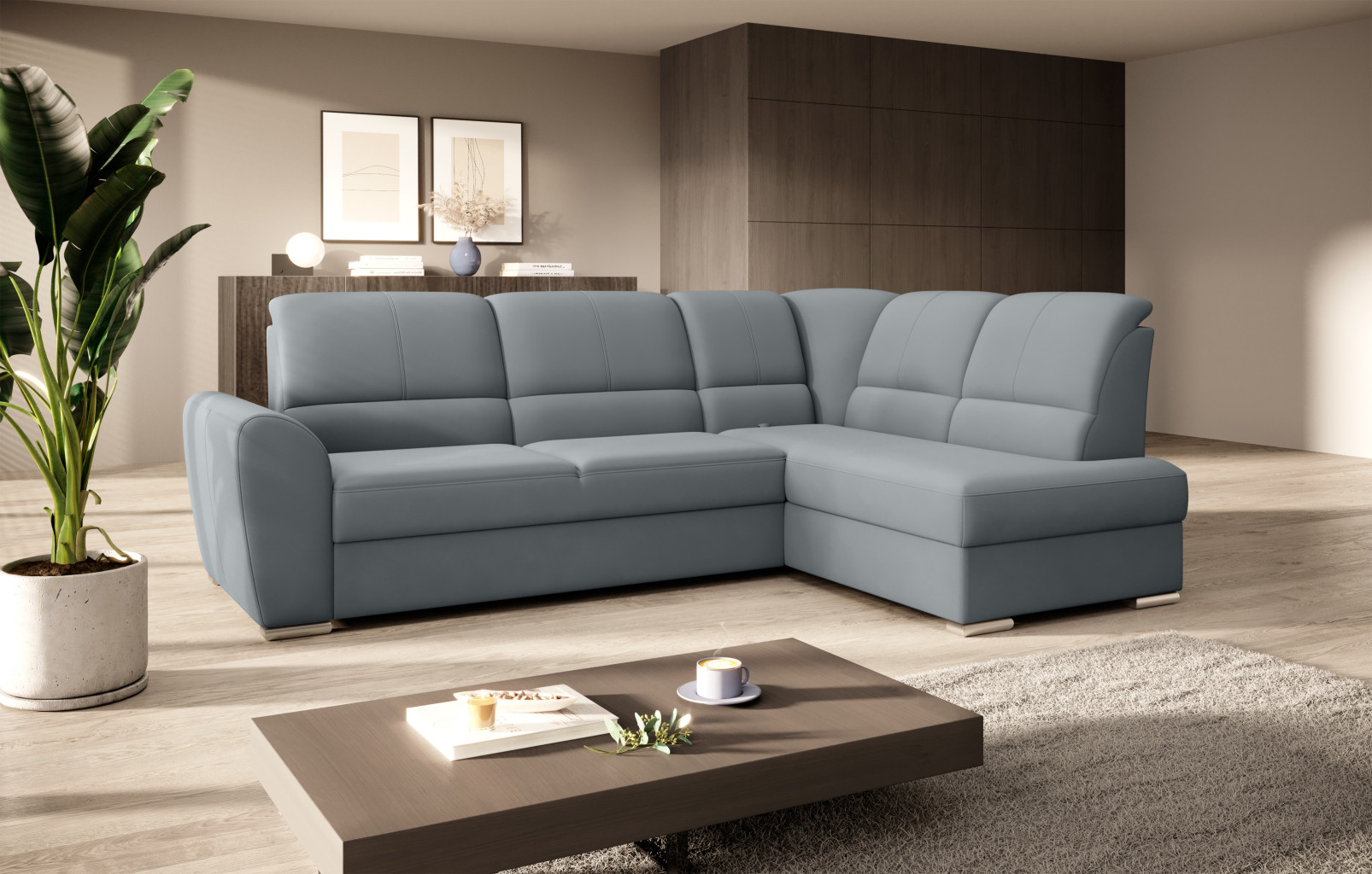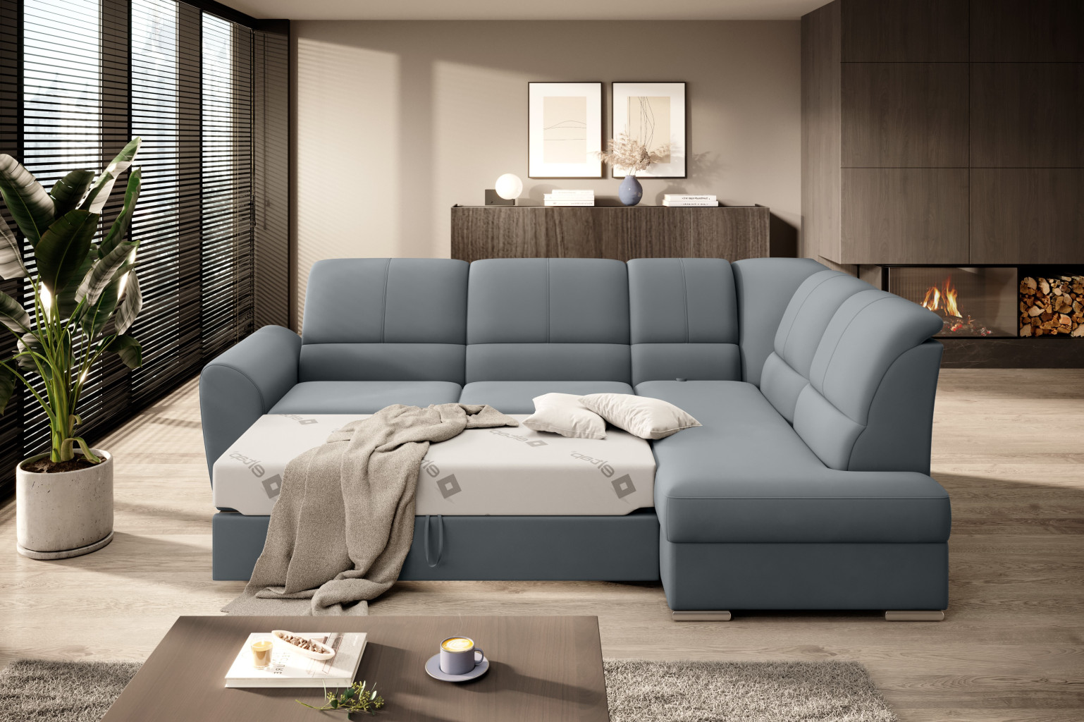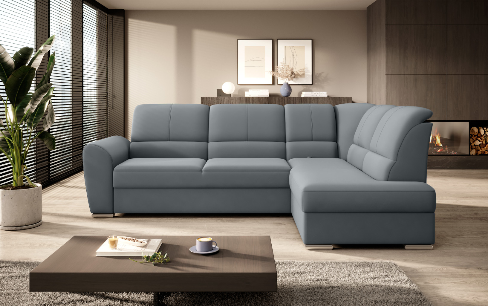 Dotaz na produkt Na splátky ještě dnesRohová pohovka Siber je perfektním řešením pro lidi, kteří si cení pořádku a organizace. Díky velkému prostoru na ložní prádlo pomáhá šetřit místo. Její vysoce profilovaná nastavitelná opěradla zdobená stylovým prošíváním promění i hodiny relaxace s vaším oblíbeným televizním seriálem v pohodlný a příjemný zážitek. Rozměry rohové pohovky: 270 x 186 x 93 cm, což umožňuje klidný odpočinek pro větší počet osob bez nutnosti přidávat další sedací soupravu. Rohová pohovka se navíc může stát dalším lůžkem díky funkci skládacího spaní s plochou 205 x 125 cm. Skládací mechanismus delfín použitý v tomto kusu nábytku je skvělý a jednoduchý způsob, jak proměnit rohovou pohovku v plnohodnotnou postel. Za zmínku stojí také nastavitelná opěradla, která vám pomohou pohodlně relaxovat při čtení knihy nebo sledování televize. Zajímavými prvky tohoto kusu nábytku jsou jeho 5 cm vysoké dřevěné nohy a sedák vyplněný pěnou T30, která poskytuje vynikající elasticitu a vysokou hustotu. Látky: Velvetmat 4