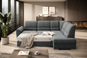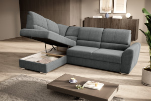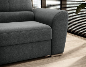 Dotaz na produkt Na splátky ještě dnesRohová pohovka Siber je perfektním řešením pro lidi, kteří si cení pořádku a organizace. Díky velkému prostoru na ložní prádlo pomáhá šetřit místo. Její vysoce profilovaná nastavitelná opěradla zdobená stylovým prošíváním promění i hodiny relaxace s vaším oblíbeným televizním seriálem v pohodlný a příjemný zážitek. Rozměry rohové pohovky: 270 x 186 x 93 cm, což umožňuje klidný odpočinek pro větší počet osob bez nutnosti přidávat další sedací soupravu. Rohová pohovka se navíc může stát dalším lůžkem díky funkci skládacího spaní s plochou 205 x 125 cm. Skládací mechanismus delfín použitý v tomto kusu nábytku je skvělý a jednoduchý způsob, jak proměnit rohovou pohovku v plnohodnotnou postel. Za zmínku stojí také nastavitelná opěradla, která vám pomohou pohodlně relaxovat při čtení knihy nebo sledování televize. Zajímavými prvky tohoto kusu nábytku jsou jeho 5 cm vysoké dřevěné nohy a sedák vyplněný pěnou T30, která poskytuje vynikající elasticitu a vysokou hustotu. Látky: Vero 5