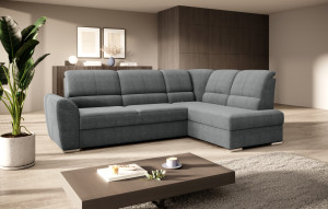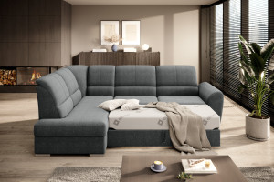 Dotaz na produkt Na splátky ještě dnesRohová pohovka Siber je perfektním řešením pro lidi, kteří si cení pořádku a organizace. Díky velkému prostoru na ložní prádlo pomáhá šetřit místo. Její vysoce profilovaná nastavitelná opěradla zdobená stylovým prošíváním promění i hodiny relaxace s vaším oblíbeným televizním seriálem v pohodlný a příjemný zážitek. Rozměry rohové pohovky: 270 x 186 x 93 cm, což umožňuje klidný odpočinek pro větší počet osob bez nutnosti přidávat další sedací soupravu. Rohová pohovka se navíc může stát dalším lůžkem díky funkci skládacího spaní s plochou 205 x 125 cm. Skládací mechanismus delfín použitý v tomto kusu nábytku je skvělý a jednoduchý způsob, jak proměnit rohovou pohovku v plnohodnotnou postel. Za zmínku stojí také nastavitelná opěradla, která vám pomohou pohodlně relaxovat při čtení knihy nebo sledování televize. Zajímavými prvky tohoto kusu nábytku jsou jeho 5 cm vysoké dřevěné nohy a sedák vyplněný pěnou T30, která poskytuje vynikající elasticitu a vysokou hustotu. Látky: Vero 5