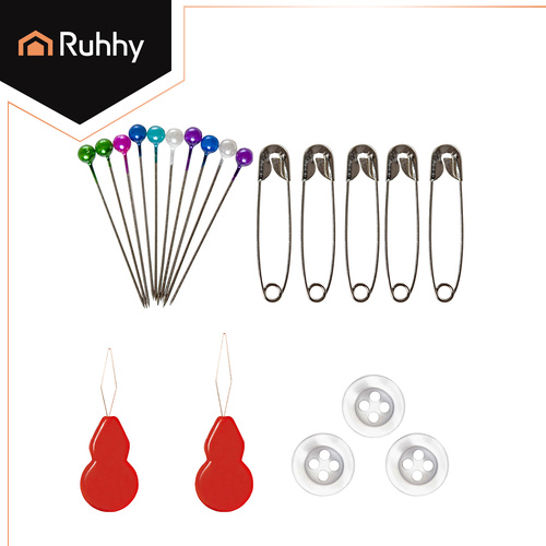 - Šicí sada obsahuje malé předměty, jako jsou jehly, špendlíky a knoflíky, které mohou představovat riziko pro děti. Uschovejte sadu na bezpečném místě, abyste předešli riziku spolknutí malých částí.