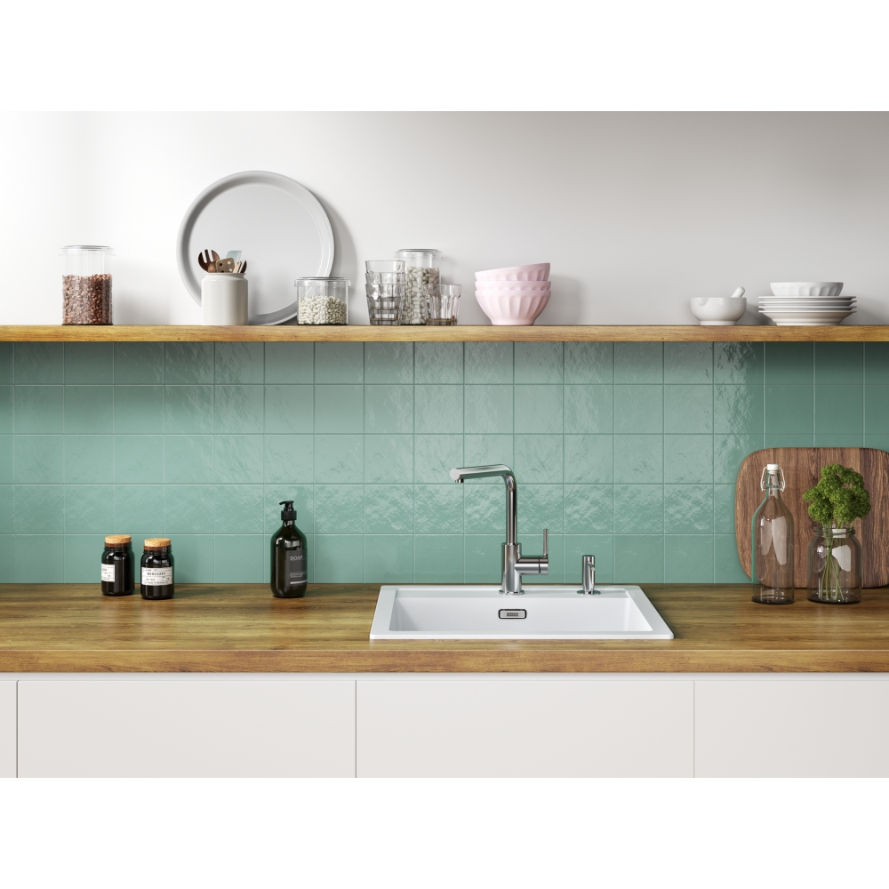 Tectonitový dřez Sirius. Cena zahrnuje: Sítkový ventil 3 1/2“ s přepadem. Sifon pro úsporu místa 6/4“ s odbočkou na myčku nádobí. Otvor pro baterii ∅ 35 mm. Možnost vyvrtat další otvor pro dávkovač saponátu. (Otvor lze vyvrtat vykružovacím vrtákem přímo při montáži).
