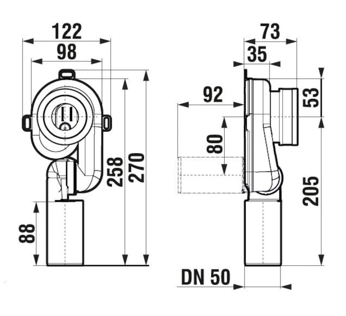 Dotaz na produktPisoárový sifon Jika, vhodný pro kapotované pisoáry. sifon je s vodorovným odtokem.