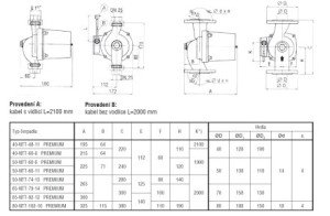 • čerpadlo je monoblokové, bezucpávkové, s elektromotorem chlazeným čerpanou kapalinou