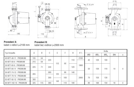 max. dopravní výška 1,5 mmax. průtok 2,5 m3/hpotrubní přípojka DN 40stavební délka 220 mmnapájení 230 V/50 Hzmax. provozní tlak 6 barVlastnostičerpadlo je určeno k nucenému oběhu vody v nízkotlakých...