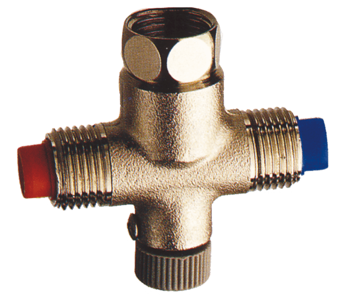Kompaktní směšovací regulátor teploty pro stojánkové ventily, tlačné ventily a senzorové baterie.