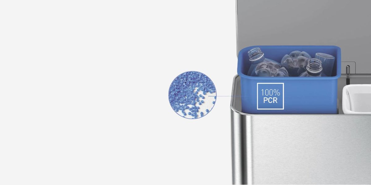 Vyrobené ze 100% recyklovaného plastu. Vnitřní nádoby lze snadno vyjmout pro rychlou výměnu sáčků a pohodlné čištění.