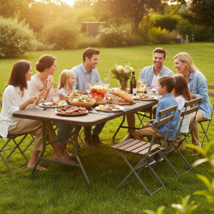 Stůl je vyroben z materiálů odolných vůči povětrnostním podmínkám, což umožňuje jeho využití i ve venkovním prostředí. Skládací provedení s praktickým zámkem proti samovolnému složení a pohodlnou rukojetí usnadňuje manipulaci i přepravu – po složení se snadno vejde do kufru auta. Snadná údržba a univerzální hnědá barva s ratanovým vzhledem z něj dělají funkční a estetický doplněk pro každou příležitost.