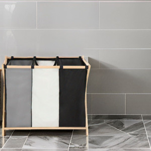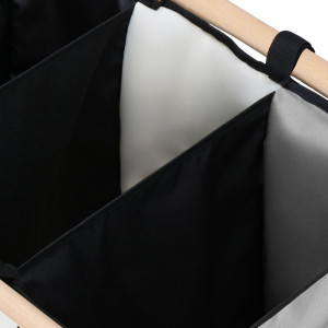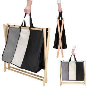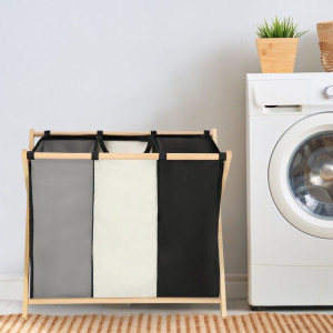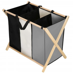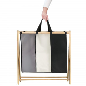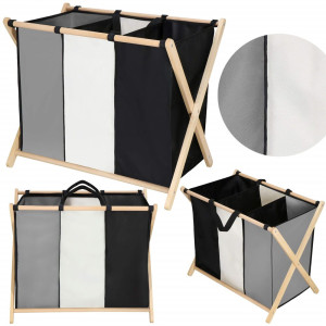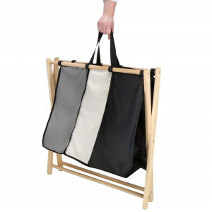 Díky třem barevně odlišeným oddílům snadno roztřídíte světlé, tmavé a barevné oblečení, což vám usnadní praní. Skládací dřevěná konstrukce zajistí nejen stabilitu, ale také umožní jednoduché složení a úsporu místa, když koš právě nepotřebujete. Textilní přihrádky jsou pratelné, což zajišťuje snadnou údržbu a dlouhou životnost.