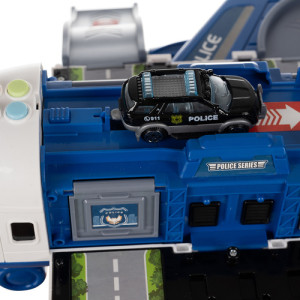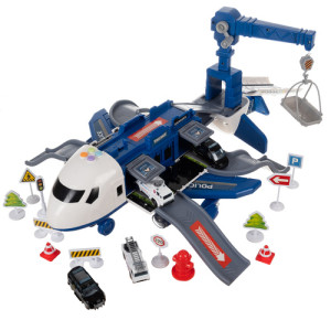 Dotaz na produktpolicejní letadlo s pohyblivými částmi – sada obsahuje velký letadlo s otevíracími boky, rampa, odpalovací zařízení pro auta a otočný jeřáb , které hře dodávají realismus a zpestřují každý akční scénář