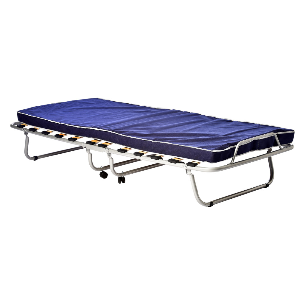 Dotaz na produkt Na splátky ještě dnestrubkový rám, barevné provedení stříbrná, 12 dřevěných lišt rozměr složené (š/h/v) 81 × 29 × 88 cm cena včetně matrace, výška matrace 6 cm