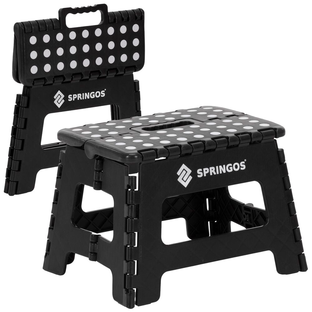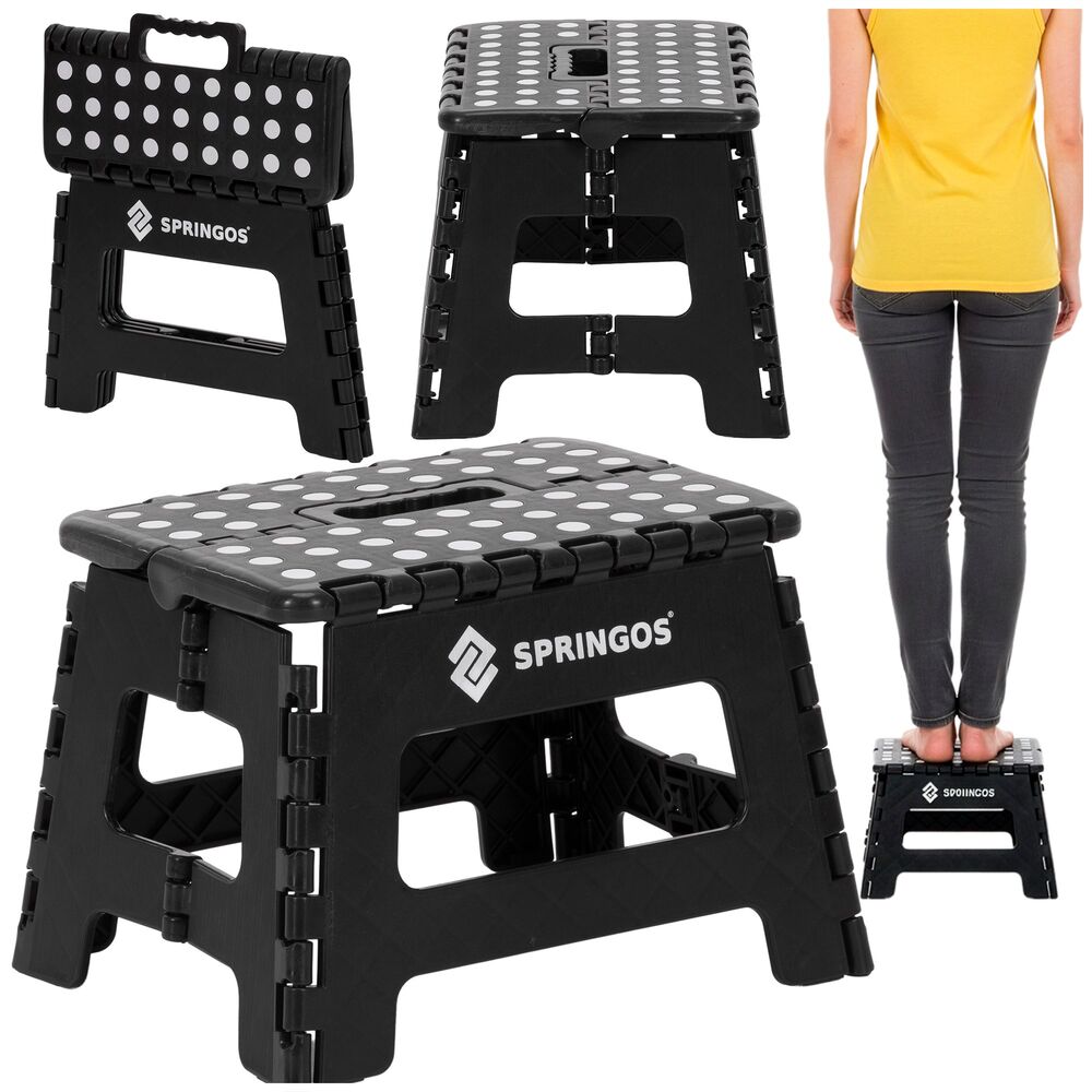 Skládací stolička SPRINGOS HA7567 černá je praktickým pomocníkem do každé domácnosti, kuchyně, dílny i kanceláře. Díky pevné konstrukci z odolného PP materiálu nabízí vysokou nosnost až 150 kg, takže je vhodná pro dospělé i děti. Protiskluzové nožičky zajišťují stabilitu a bezpečné používání i na hladkých površích, zatímco kompaktní výška umožňuje pohodlné dosáhnutí do vyšších míst.
