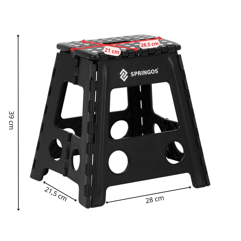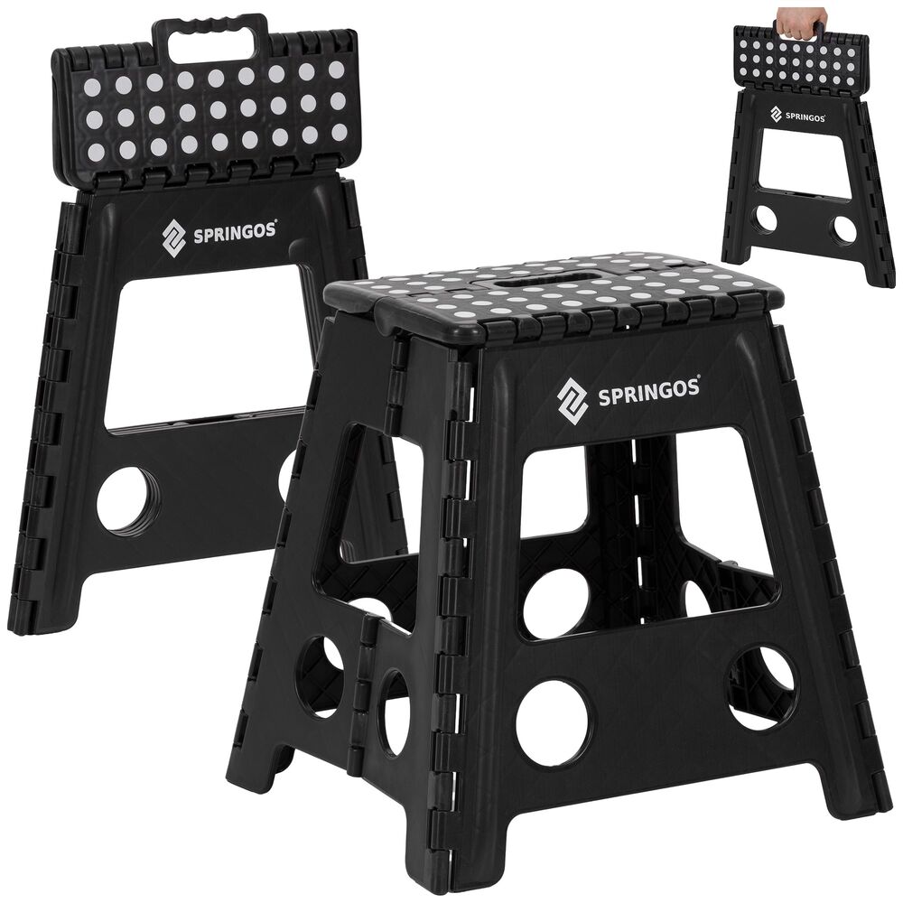Skládací stolička SPRINGOS HA7568 černá je všestranným pomocníkem pro domácnost, zahradu i volnočasové aktivity. Díky pevné konstrukci z odolného PP materiálu nabízí vysokou nosnost až 150 kg a stabilní oporu při sezení i stání. Protiskluzové nohy zajišťují bezpečné používání na různých typech povrchů, zatímco širší základna přispívá k celkové stabilitě.