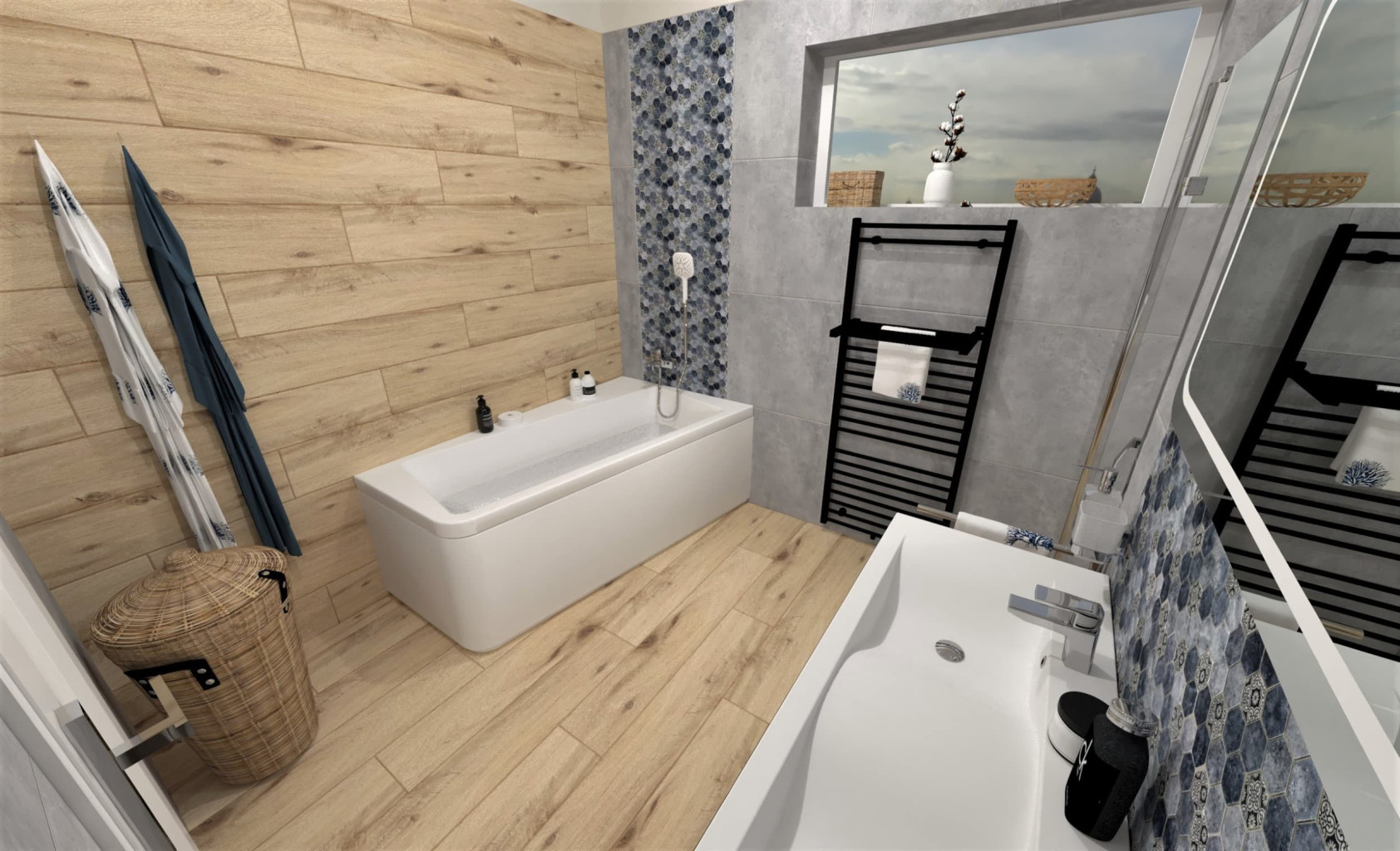 Dotaz na produktSkleněné mozaiky mají všestranné využití a jejich výhodou je dlouhodobá životnost. Používat se mohou jak v interiéru, tak exteriéru. Vždy je však vhodné poradit se s odborníkem. Skleněná modrá mozaika doplněná o hexagony s patchworkem vypadá v ploše skvěle a nikdo ji jen tak nepřehlédne.
