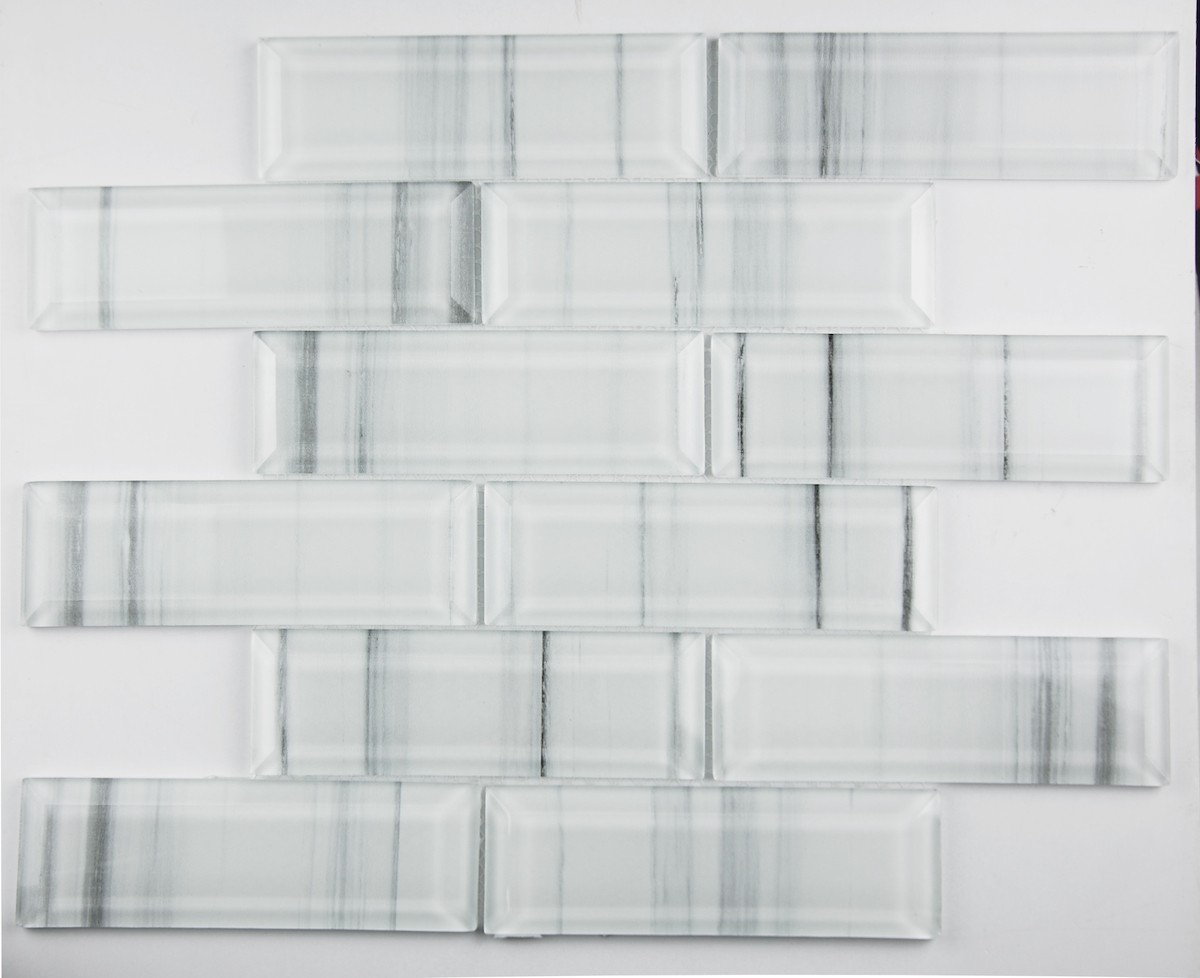 Skleněná mozaika Premium Mosaic bílá 30x30 cm lesk MOSV48STRIPE