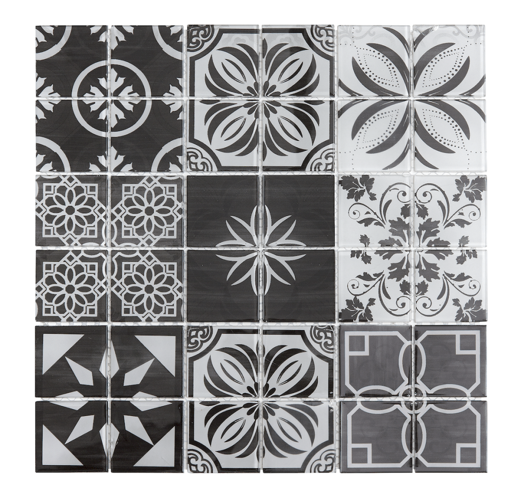 1 SET = 1 plato mozaikyPARAMETRY:Balení: 1 m2 setHmotnost balení: 0,77  kgDruh výrobku: skleněná mozaika Materiál: sklo Určení: interiér Barva popisná: černobílá Barva základní: mix barev Design:...