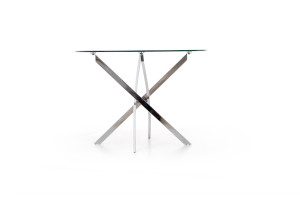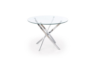 Kulatý skleněný jídelní stůl Raymond je vyroben v kombinaci skla a kovu. Deska stolu je z čirého skla a konstrukce stolu je vyrobena z chromované oceli.