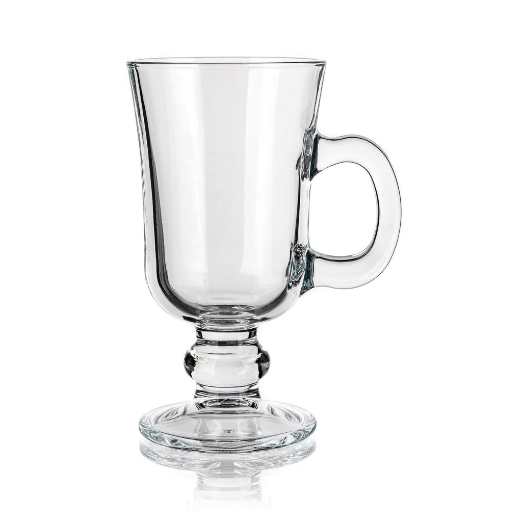 Sklenice Bistro IRISH COFFEE na nožce s ouškem, z čirého skla, pro podávání teplých i studených nápojů.