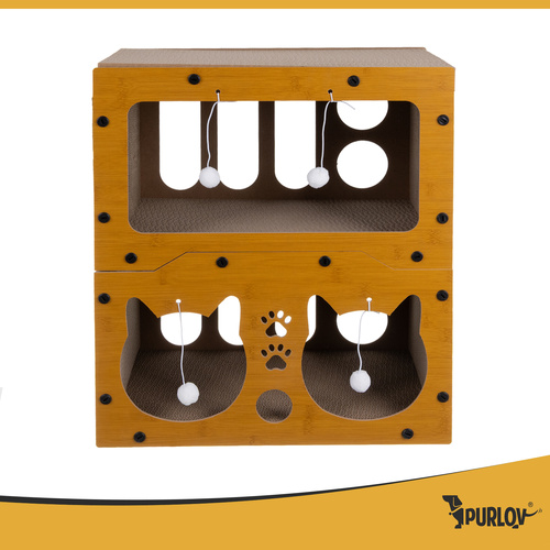 Dotaz na produktPurlov škrabadlo 3 v 1 s domečkem je kombinací elegance, odolnosti a kočičí zábavy. Dvouúrovňová konstrukce z HDF desek zajišťuje stabilitu a bezpečnost a 4 míče Zaručují každodenní dávku pohybu a zábavy. Přírodní, tvrdý povrch podporuje škrábání – váš nábytek tak konečně může dýchat a váš mazlíček bude mít oblíbené místo k odpočinku a hraní.
