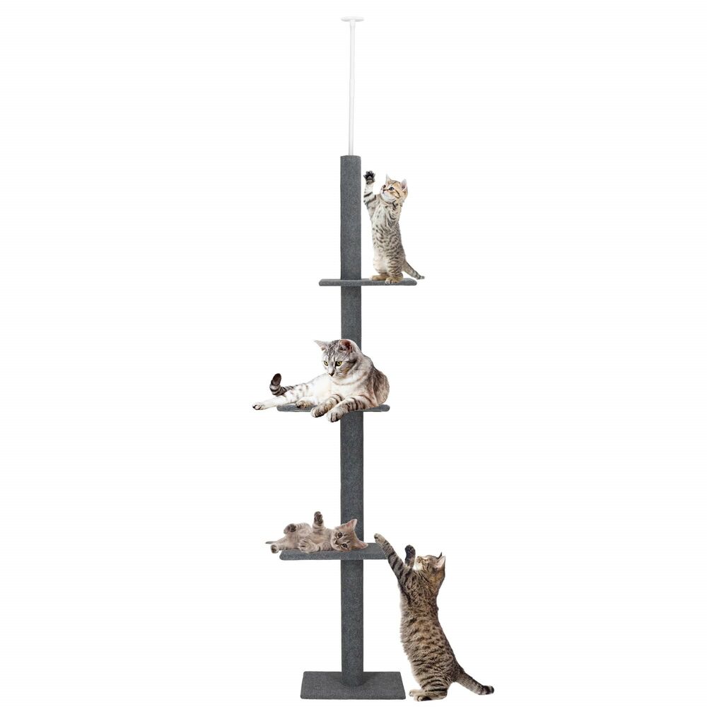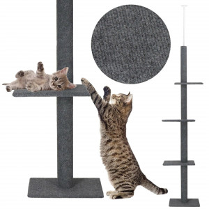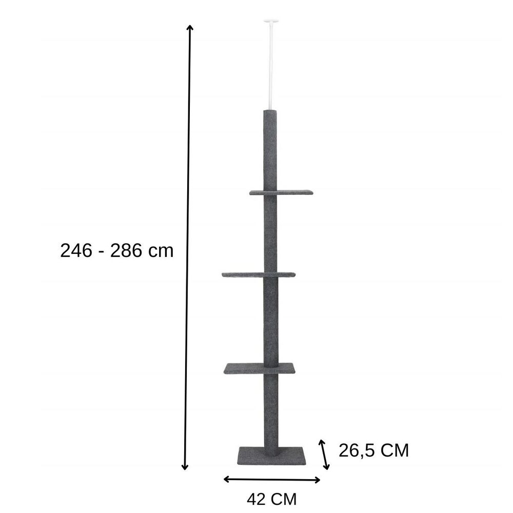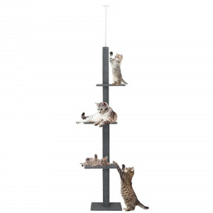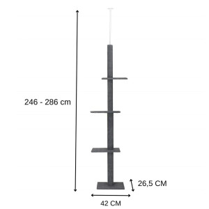 Kočičí škrabadlo vhodné i pro menší prostory díky svému úzkému designu. Má tři patra, kde kočky mohou odpočívat a šplhat. Stabilitu zajišťuje teleskopická rozpěra, která se přizpůsobí výšce stropu od 246 cm do 286 cm. Celé škrabadlo je potaženo sisalovým materiálem, který kočky milují. Díky odpočívadlům poskytuje skvělý prostor pro relaxaci i zábavu vaší kočky.