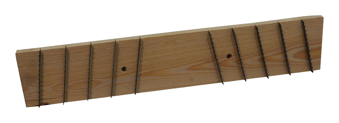 materiál: dřevěná základna, pilník z tvrdé oceli, plastová rukojeť