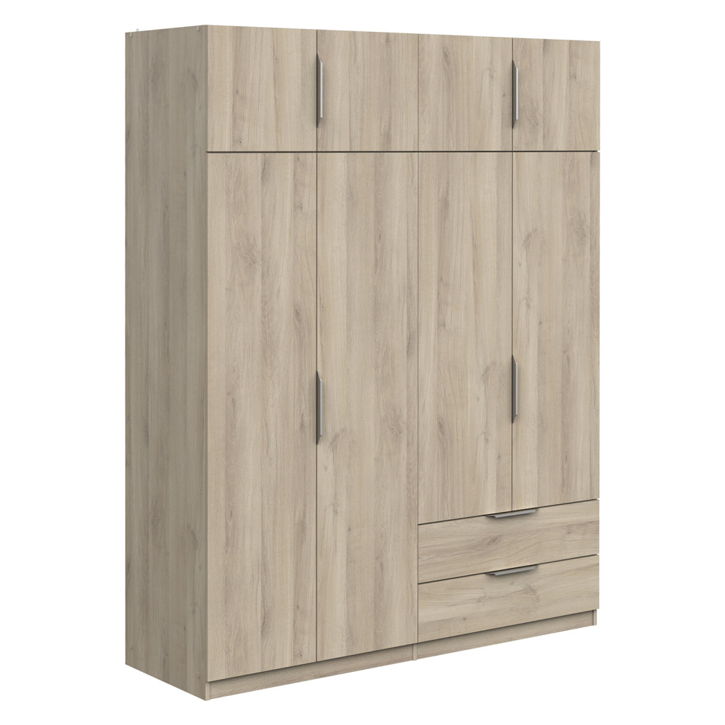 Dotaz na produkt Na splátky ještě dnesbarevné provedení dub Kronberg prostor dělený na poloviny, v levé části šatní tyč v pravé části 2 police a 2 zásuvky s kovovými pojezdy v horní části dva úložné prostory maximální nosnosti uvedeny v návodu k montáži