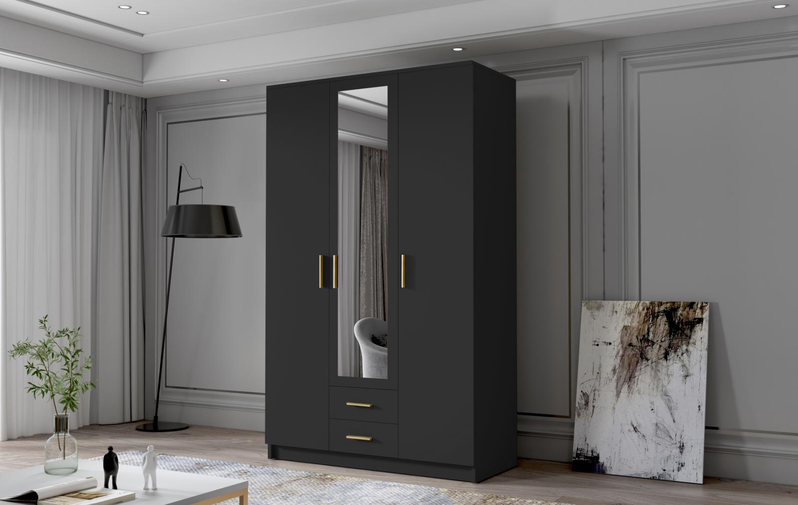 Dotaz na produkt Na splátky ještě dnesŠatní skříň Arya II v moderním designu má šířku 120 cm a je rozdělena na dvě praktické části. Vnitřní uspořádání kombinuje závěsnou tyč, pět polic a 2 šuplíky, což umožňuje přehledné a praktické rozdělení šatníku.