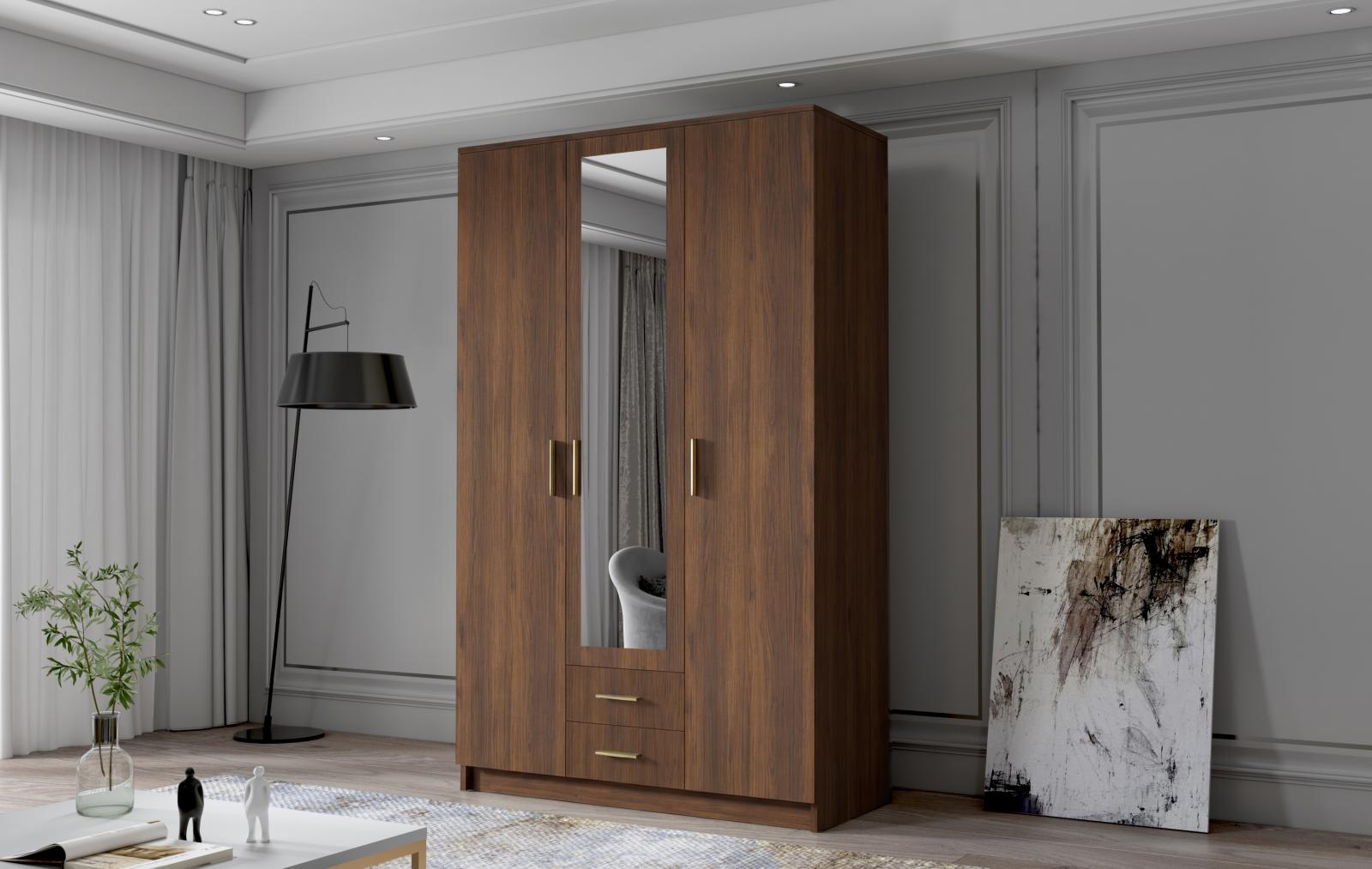 Dotaz na produkt Na splátky ještě dnesŠatní skříň Arya II v moderním designu má šířku 120 cm a je rozdělena na dvě praktické části. Vnitřní uspořádání kombinuje závěsnou tyč, pět polic a 2 šuplíky, což umožňuje přehledné a praktické rozdělení šatníku.