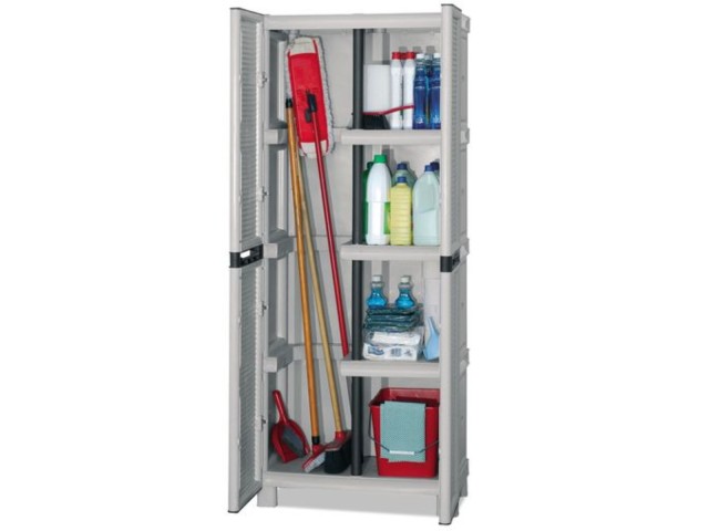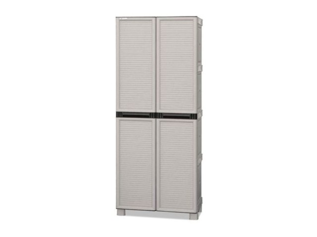 Plastová skříň z modulové řady Concert je vyrobena z polypropylenui který je odoolný vůči povětrnostním podmínkám. Omyvatelná. Ideální do dílny nebo na zahradu.Parametry: Šíře:700 mmHloubka:390 mmVýška:1720 mm (172 cm)
